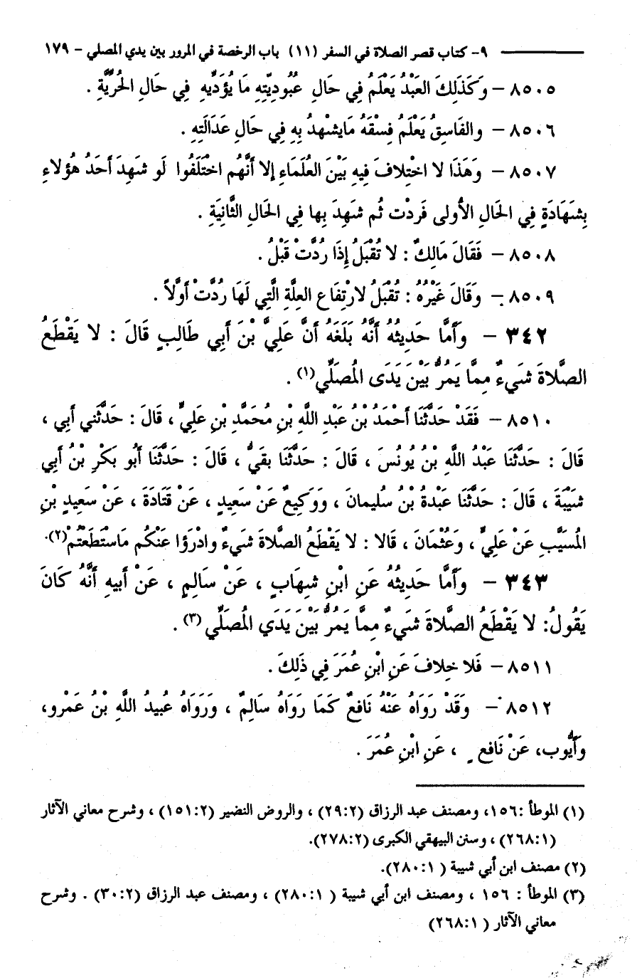 343 - وَأَمَّا حَدِيثُهُ عَنِ ابْنِ شِهَابٍ، عَنْ سَالِمٍ، عَنْ أَبِيهِ أَنَّهُ كَانَ يَقُولُ: لَا يَقْطَعُ الصَّلَاةَ شَيْءٌ مِمَّا يَمُرُّ بَيْنَ يَدَيِ الْمُصَلِّي.