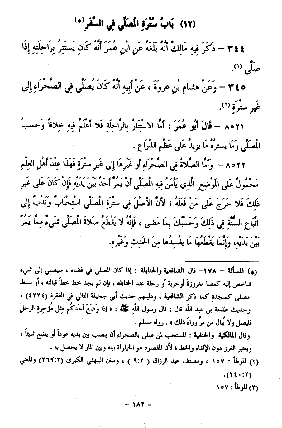 345 - وَعَنْ هِشَامِ بْنِ عُرْوَةَ، عَنْ أَبِيهِ، أَنَّهُ كَانَ يُصَلِّي فِي الصَّحْرَاءِ إِلَى غَيْرِ سُتْرَةٍ.