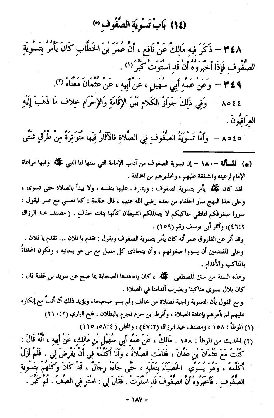8545 - وَأَمَّا تَسْوِيَةُ الصُّفُوفِ فِي الصَّلَاةِ فَالْآثَارُ فِيهَا مُتَوَاتِرَةٌ مِنْ طُرُقٍ شَتَّى