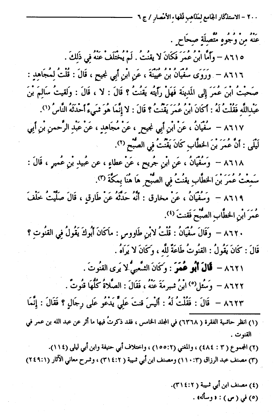 8621 - قَالَ أَبُو عُمَرَ: وَكَانَ الشَّعْبِيُّ لَا يَرَى الْقُنُوتَ.