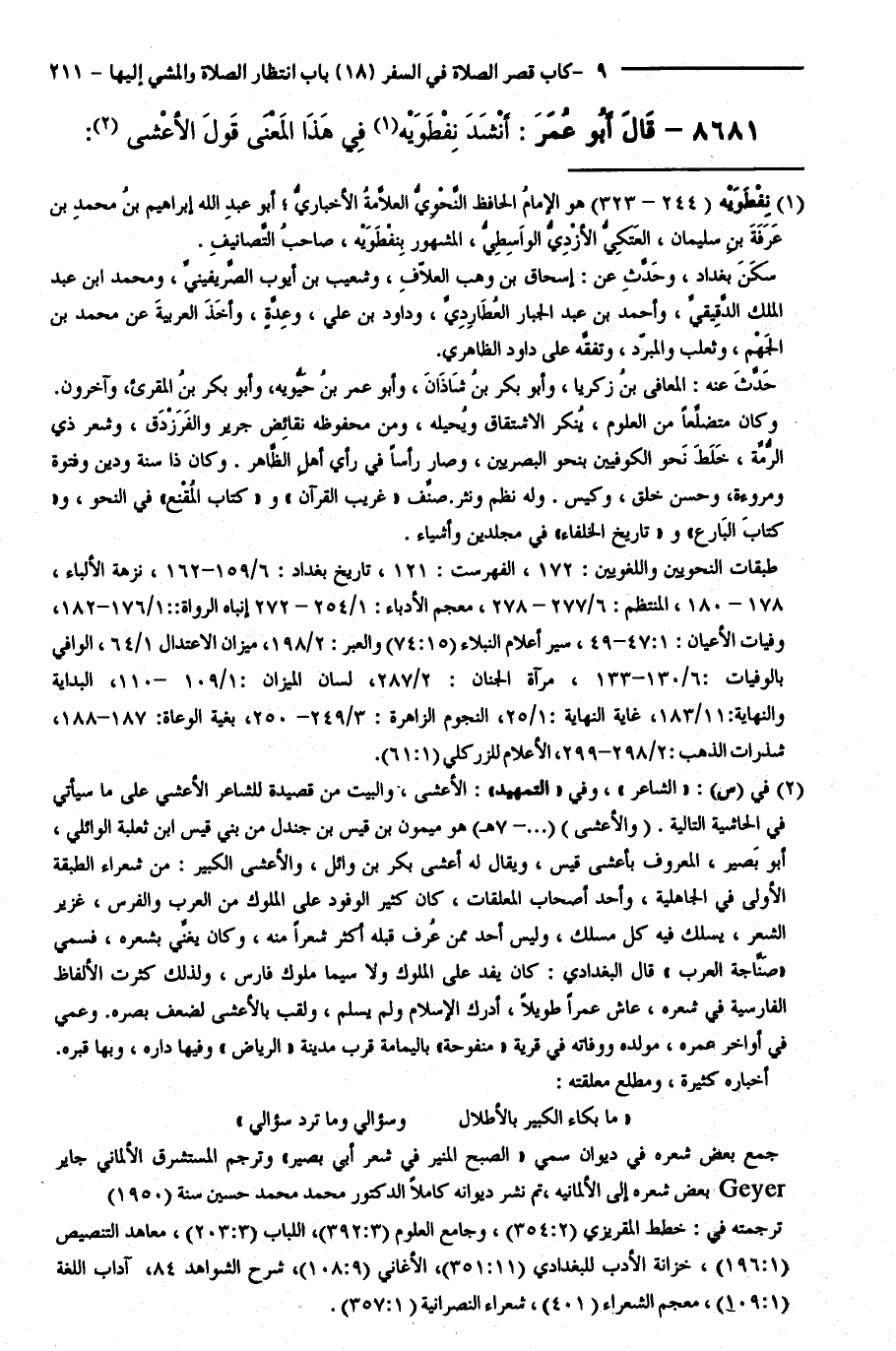 8681 - قَالَ أَبُو عُمَرَ: أَنْشَدَ نِفْطَوَيْهِ فِي هَذَا الْمَعْنَى قَوْلَ الْأَعْشَى: