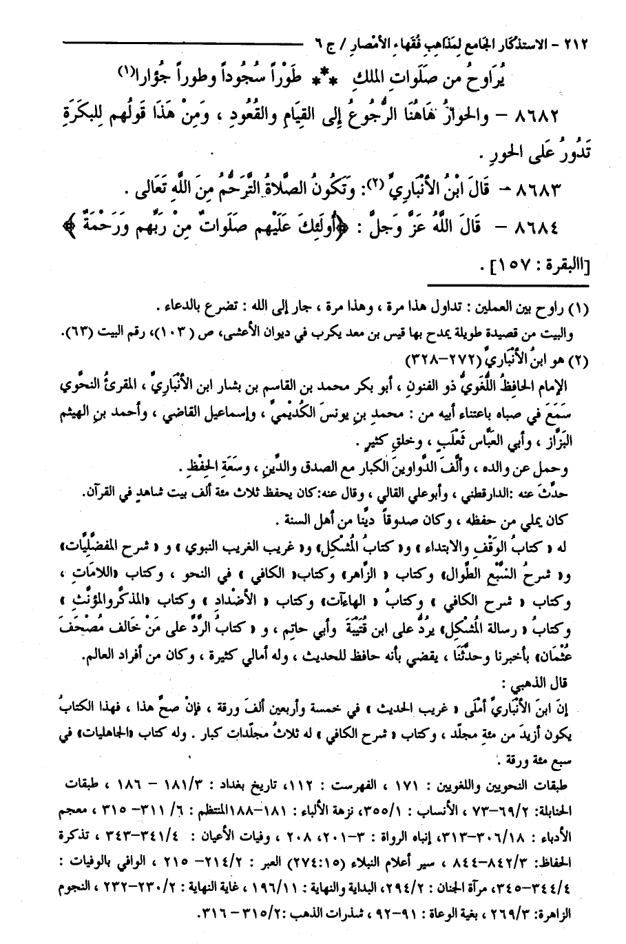 8683 - قَالَ ابْنُ الْأَنْبَارِيِّ: وَتَكُونُ الصَّلَاةُ التَّرَحُّمُ مِنَ اللَّهِ تَعَالَى.