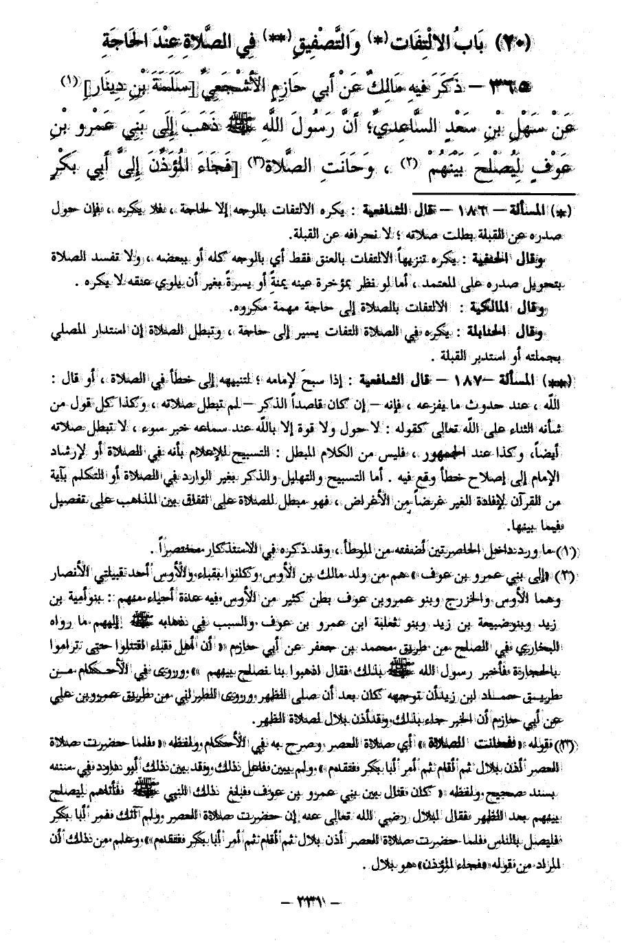 ( 20) بَابُ الِالْتِفَاتِ وَالتَّصْفِيقِ فِي الصَّلَاةِ عِنْدَ الْحَاجَةِ.