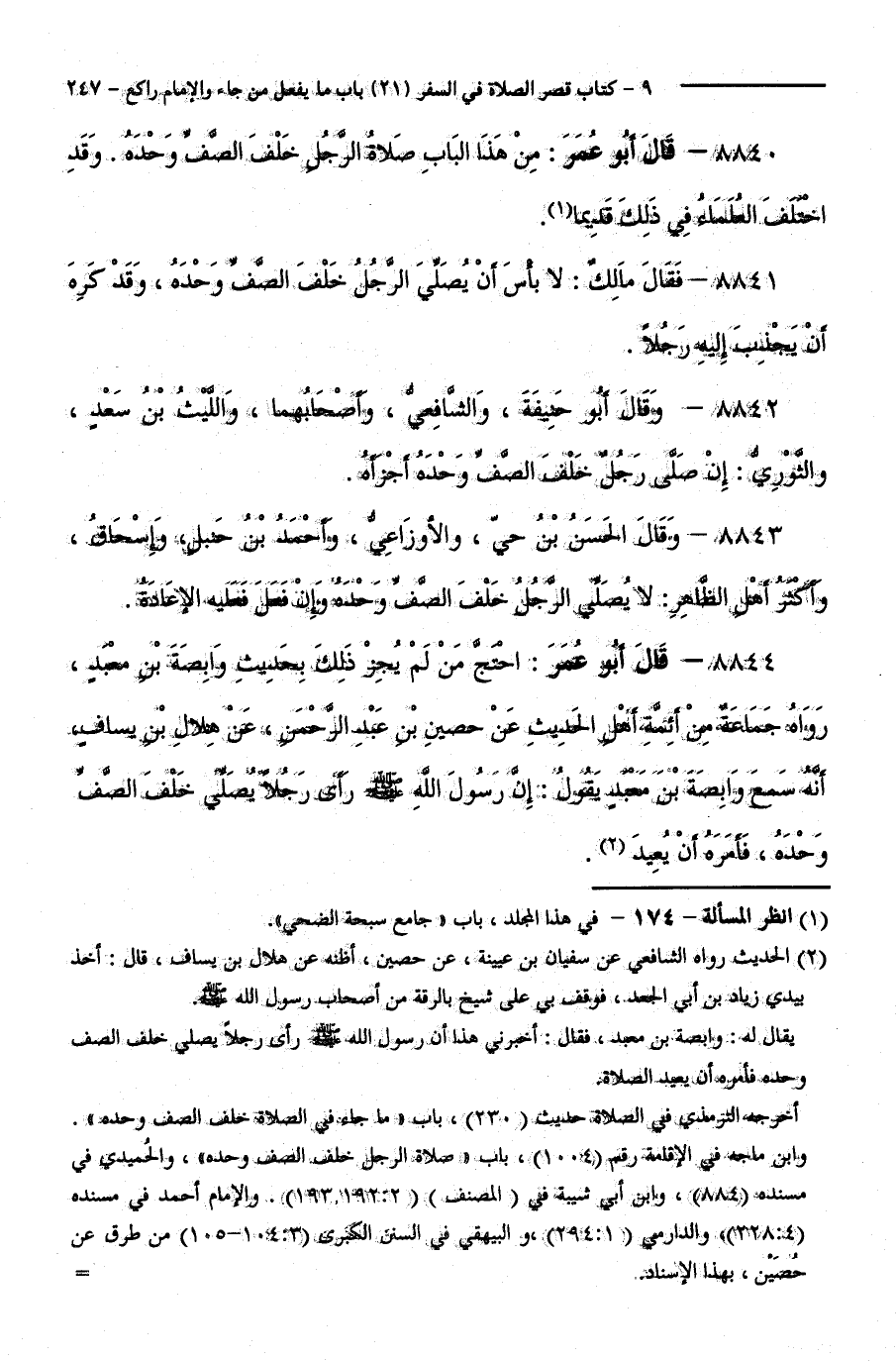 8840 - قَالَ أَبُو عُمَرَ: مِنْ هَذَا الْبَابِ صَلَاةُ الرَّجُلِ خَلْفَ الصَّفِّ وَحْدَهُ، وَقَدِ اخْتَلَفَ الْعُلَمَاءُ فِي ذَلِكَ قَدِيمًا.