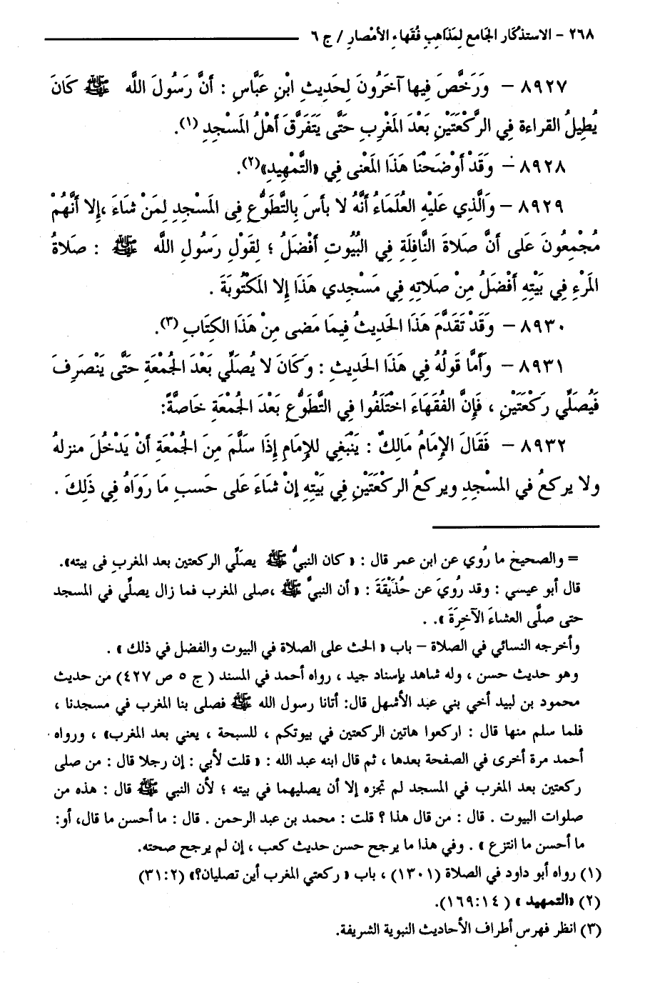 8927 - وَرَخَّصَ فِيهَا آخَرُونَ لِحَدِيثِ ابْنِ عَبَّاسٍ:أَنَّ رَسُولَ اللَّهِ - صَلَّى اللَّهُ عَلَيْهِ وَسَلَّمَ - كَانَ يُطِيلُ الْقِرَاءَةَ فِي الرَّكْعَتَيْنِ بَعْدَ الْمَغْرِبِ، حَتَّى يَتَفَرَّقَ أَهْلُ الْمَسْجِدِ.