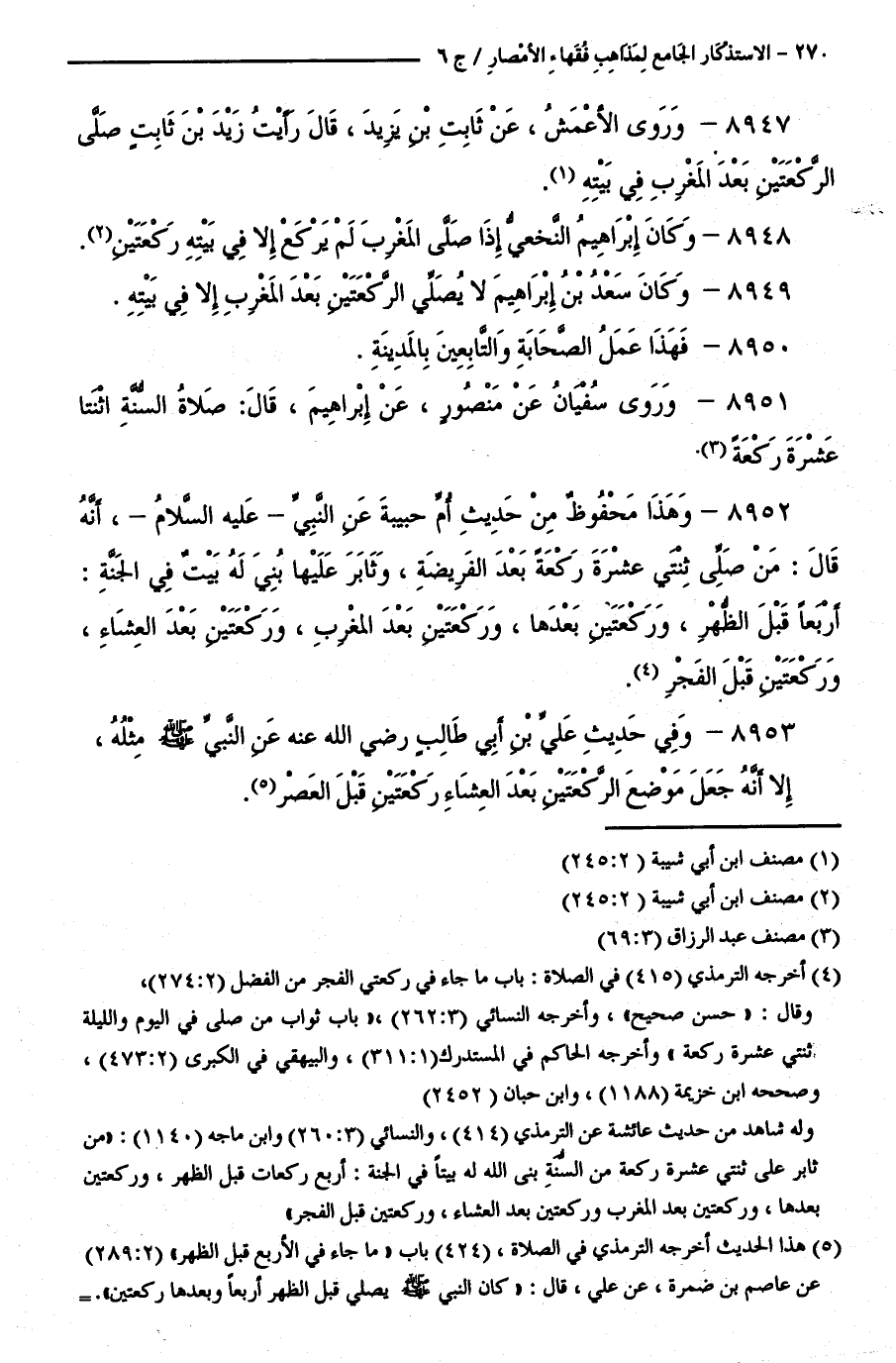 8948 - وَكَانَ إِبْرَاهِيمُ النَّخَعِيُّ إِذَا صَلَّى الْمَغْرِبَ لَمْ يَرْكَعْ إِلَّا فِي بَيْتِهِ رَكْعَتَيْنِ.