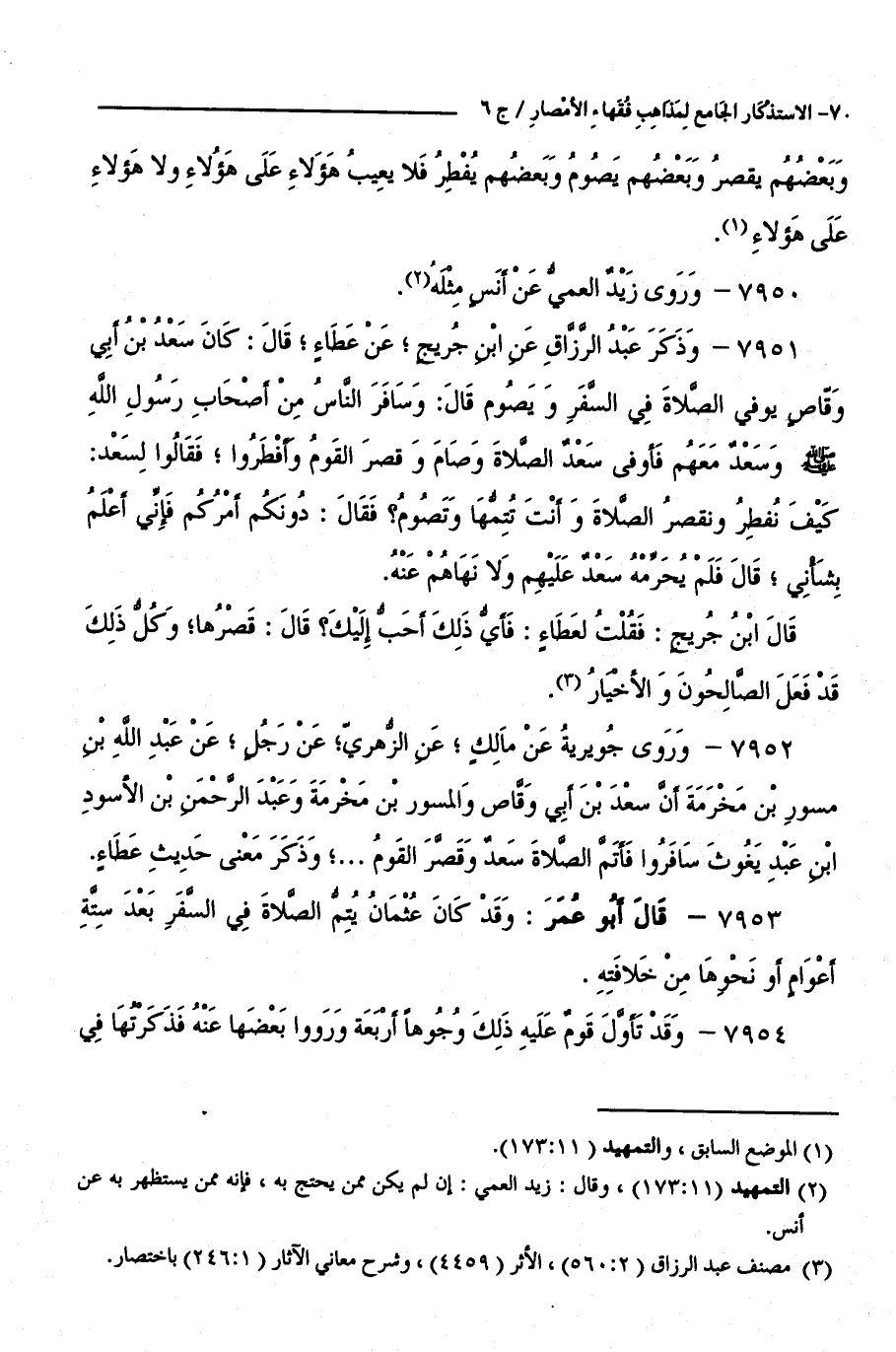 7953 - قَالَ أَبُو عُمَرَ: وَقَدْ كَانَ عُثْمَانُ يُتِمُّ الصَّلَاةَ فِي السَّفَرِ بَعْدَ سِتَّةِ أَعْوَامٍ أَوْ نَحْوِهَا مِنْ خِلَافَتِهِ.