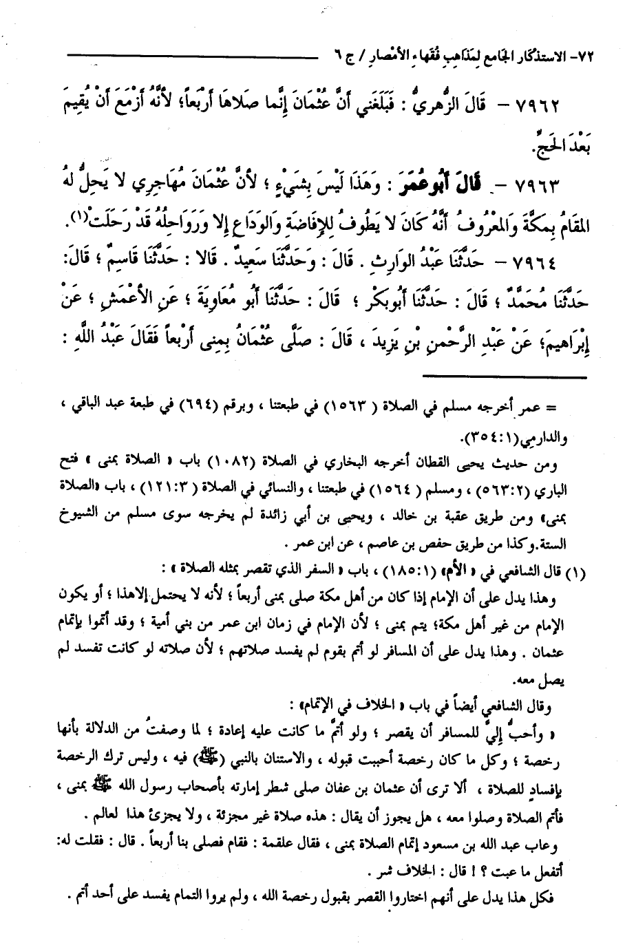 7962 - قَالَ الزُّهْرِيُّ: فَبَلَغَنِي أَنَّ عُثْمَانَ إِنَّمَا صَلَّاهَا أَرْبَعًا ; لِأَنَّهُ أَزْمَعَ أَنْ يُقِيمَ بَعْدَ الْحَجِّ.