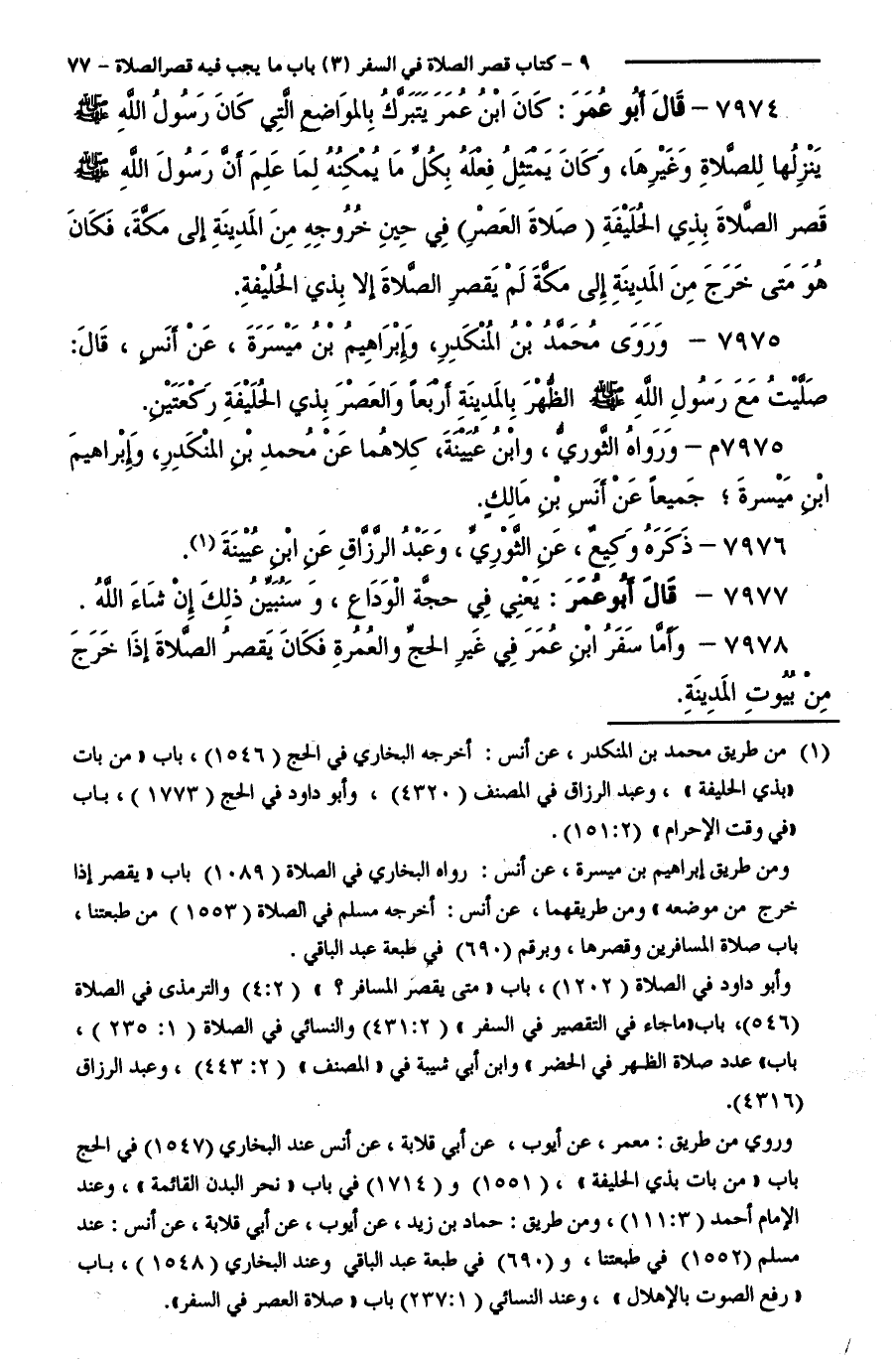 7975 - وَرَوَى مُحَمَّدُ بْنُ الْمُنْكَدِرِ، وَإِبْرَاهِيمُ بْنُ مَيْسَرَةَ، عَنْ أَنَسٍ، قَالَ:صَلَّيْتُ مَعَ رَسُولِ اللَّهِ - صَلَّى اللَّهُ عَلَيْهِ وَسَلَّمَ - الظُّهْرَ بِالْمَدِينَةِ أَرْبَعًا، وَالْعَصْرَ بِذِي الْحُلَيْفَةِ رَكْعَتَيْنِ.