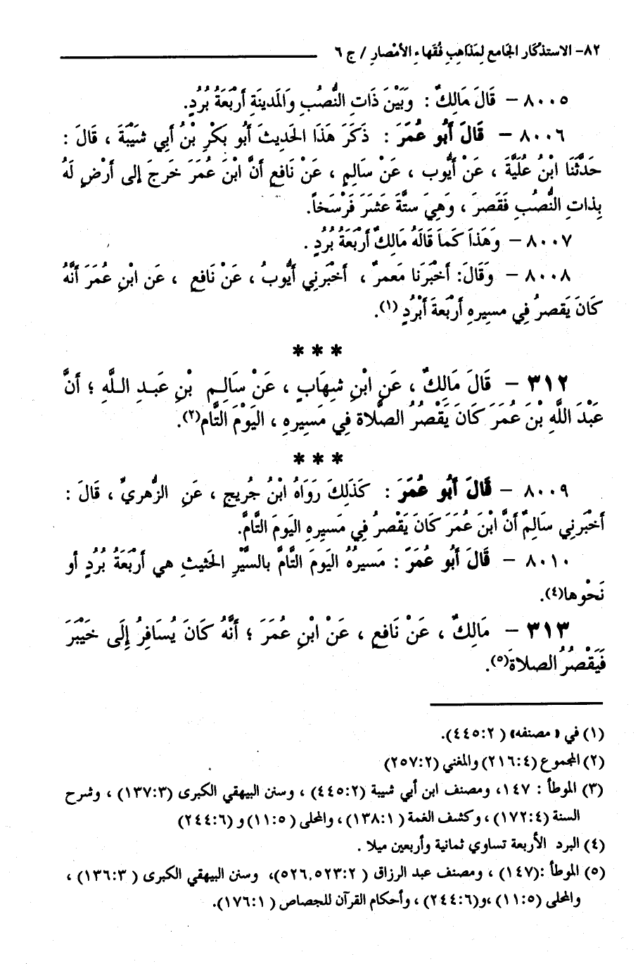 8009 - قَالَ أَبُو عُمَرَ: كَذَلِكَ رَوَاهُ ابْنُ جُرَيْجٍ، عَنِ الزُّهْرِيِّ، قَالَ: أَخْبَرَنِي سَالِمٌ أَنَّ ابْنَ عُمَرَ كَانَ يَقْصُرُ فِي مَسِيرِهِ الْيَوْمَ التَّامَّ.