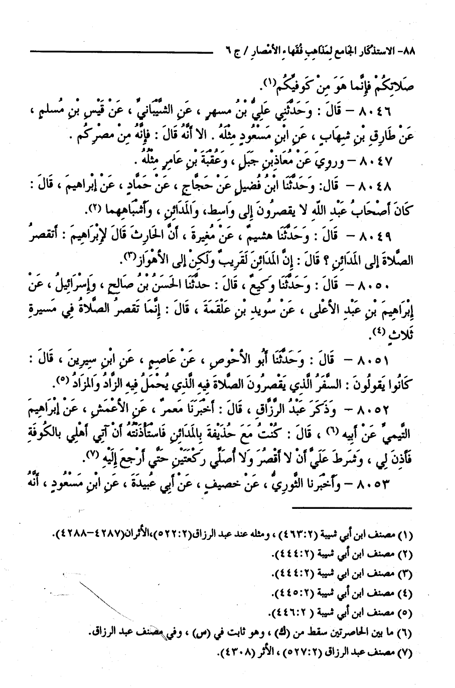 8048 - قَالَ: وَحَدَّثَنَا ابْنُ فُضَيْلٍ، عَنْ حَجَّاجٍ، عَنْ حَمَّادٍ، عَنْ إِبْرَاهِيمَ، قَالَ: كَانَ أَصْحَابُ عَبْدِ اللَّهِ لَا يَقْصُرُونَ إِلَى وَاسِطَ، وَالْمَدَائِنِ، وَأَشْبَاهِهِمَا.