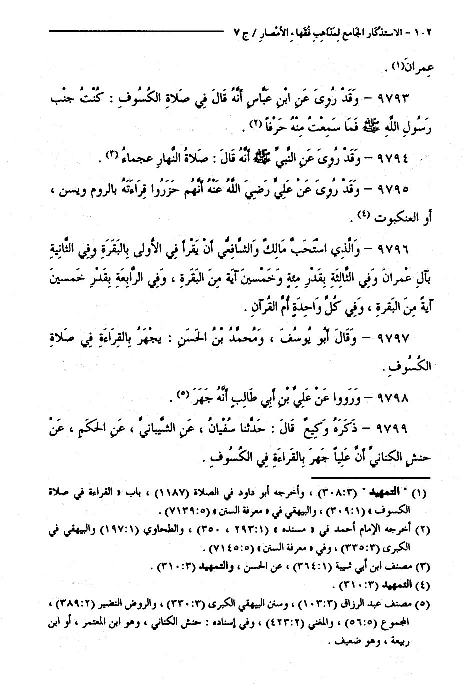 9797 - وَقَالَ أَبُو يُوسُفَ وَمُحَمَّدُ بْنُ الْحَسَنِ يَجْهَرُ بِالْقِرَاءَةِ فِي صَلَاةِ الْكُسُوفِ.