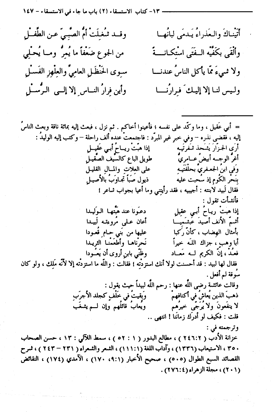 أَتَيْنَاكَ وَالْعَذْرَاءُ يَدْمَى لَبَانُهَا وَقَدْ شُغِلَتْ أُمُّ الصَّبِيِّ عَنِ الطِّفْلِ وَأَلْقَى بِكَفَّيْهِ الْفَتَى اسْتِكَانَةً