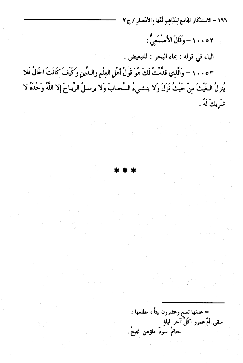 10053 - وَالَّذِي قَدَّمْتُ لَكَ هُوَ قَوْلُ أَهْلِ الْعِلْمِ وَالدِّينِ وَكَيْفَ كَانَتِ الْحَالُ فَلَا يُنْزِلُ الْغَيْثَ مِنْ حَيْثُ نَزَلَ وَلَا يُنْشِئُ السَّحَابَ وَلَا يُرْسِلُ الرِّيَاحَ إِلَّا اللَّهُ وَحْدَهُ لَا شَرِيكَ لَهُ.