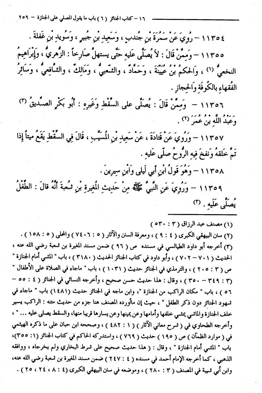 11355 - وَمِمَّنْ قَالَ: لَا يُصَلَّى عَلَيْهِ حَتَّى يَسْتَهِلَّ صَارِخًا، الزُّهْرِيُّ، وَإِبْرَاهِيمُ النَّخَعِيُّ، وَالْحَكَمُ بْنُ عُيَيْنَةَ، وَحَمَّادٌ، وَالشَّعْبِيُّ، وَمَالِكٌ، وَالشَّافِعِيُّ، وَسَائِرُ الْفُقَهَاءِ بِالْكُوفَةِ وَالْحِجَازِ.