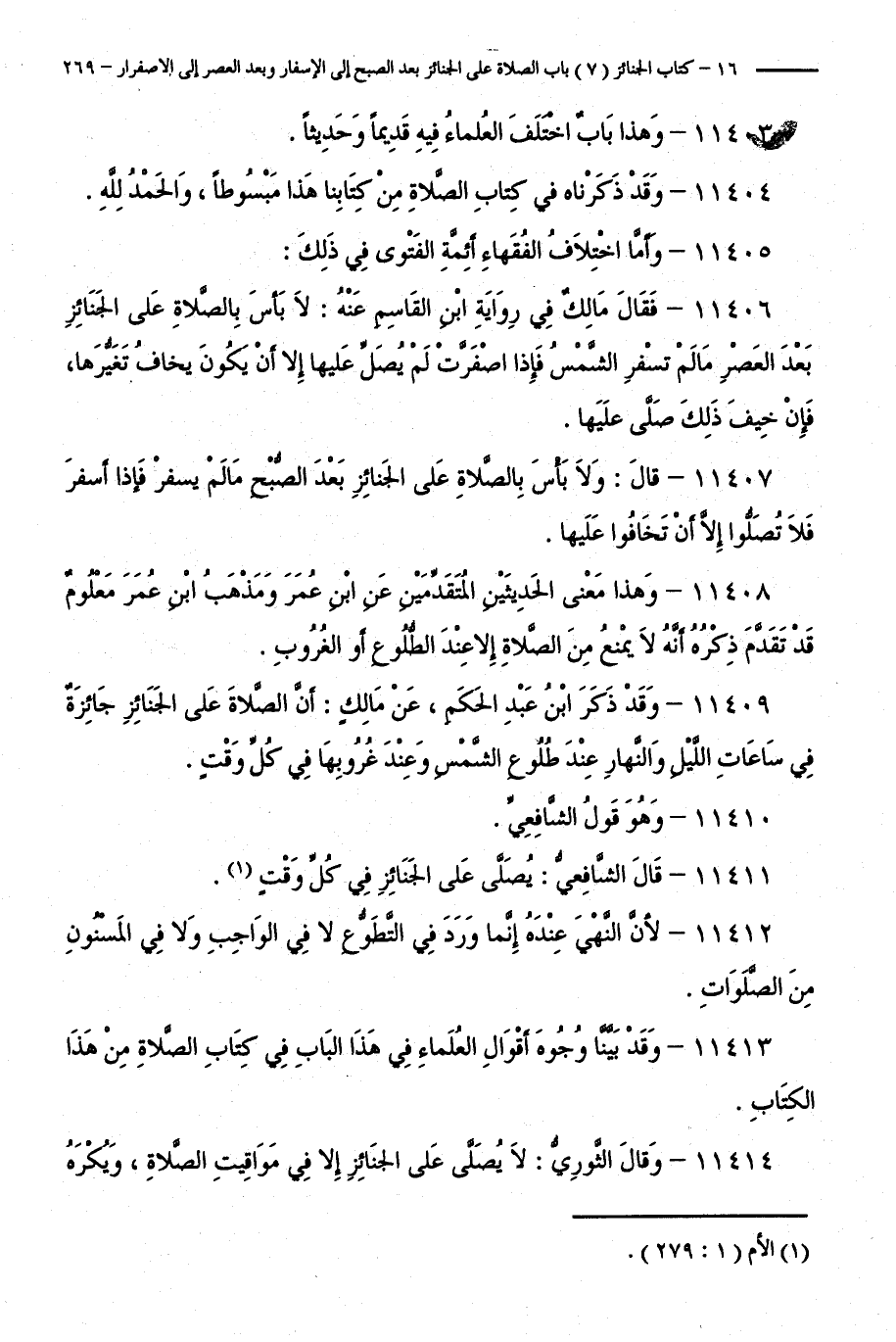 11411 - قَالَ الشَّافِعِيُّ: يُصَلَّى عَلَى الْجَنَائِزِ فِي كُلِّ وَقْتٍ.