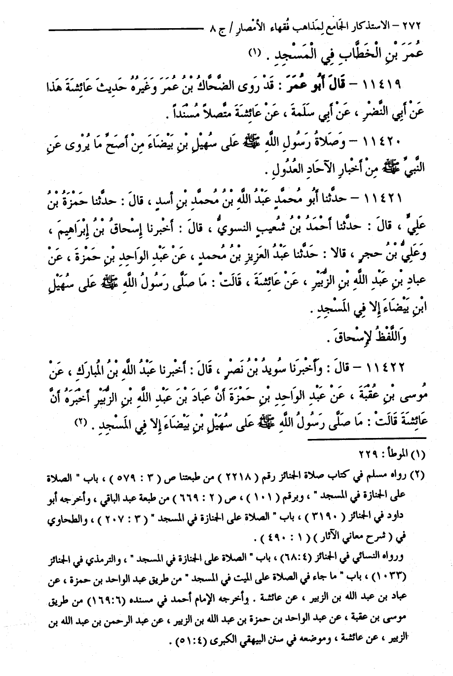 11420 - وَصَلَاةُ رَسُولِ اللَّهِ صَلَّى اللَّهُ عَلَيْهِ وَسَلَّمَ عَلَى سُهَيْلِ بْنِ بَيْضَاءَ مِنْ أَصَحِّ مَا يُرْوَى عَنِ النَّبِيِّ صَلَّى اللَّهُ عَلَيْهِ وَسَلَّمَ مِنْ أَخْبَارِ الْآحَادِ الْعُدُولِ.