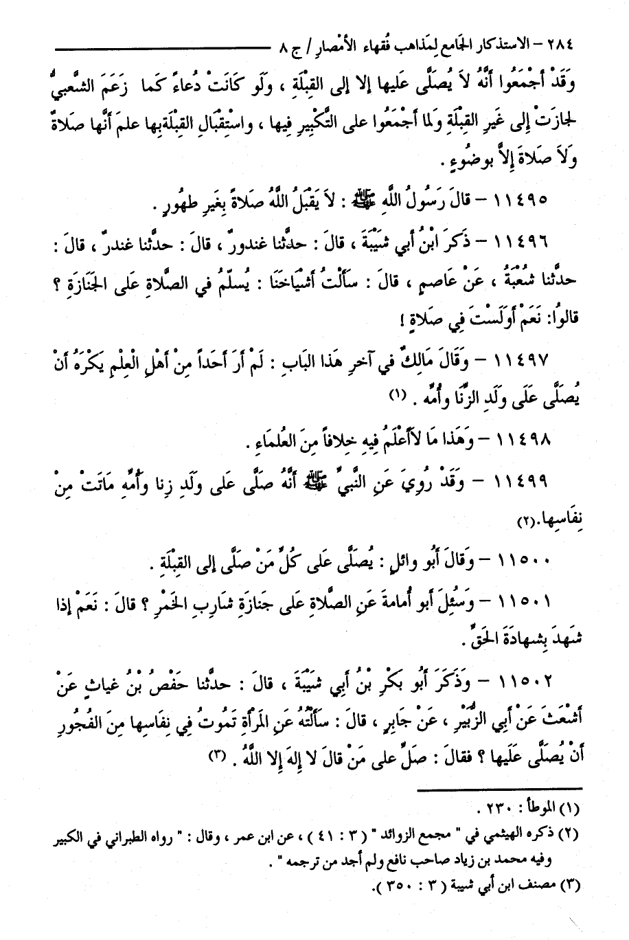 كتاب الاستذكار الجامع لمذاهب فقهاء الأمصار - ت: قلعجي (اسم الجزء: 8)