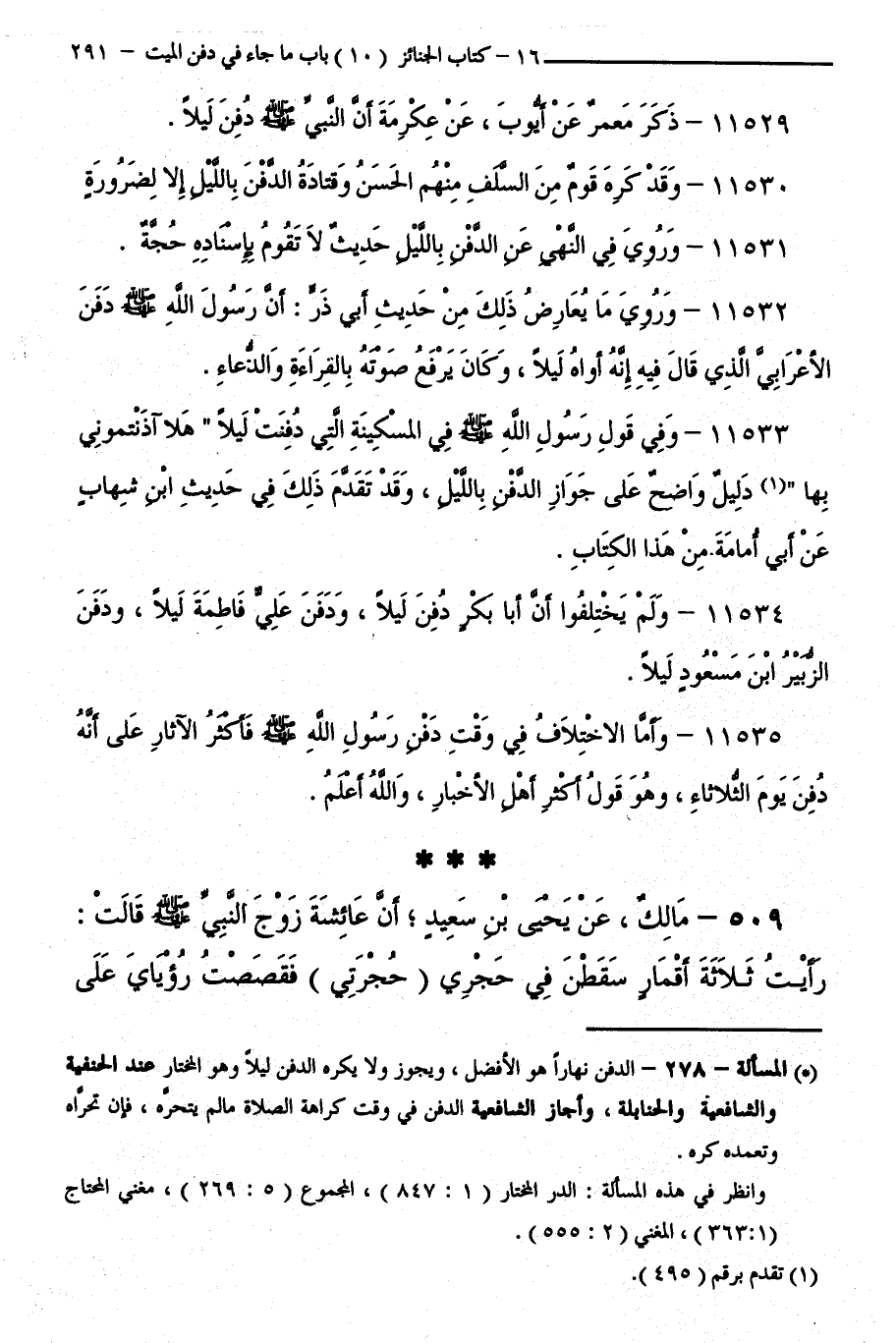 11531 - وَرُوِيَ فِي النَّهْيِ عَنِ الدَّفْنِ بِاللَّيْلِ حَدِيثٌ لَا تَقُومُ بِإِسْنَادِهِ حُجَّةٌ.