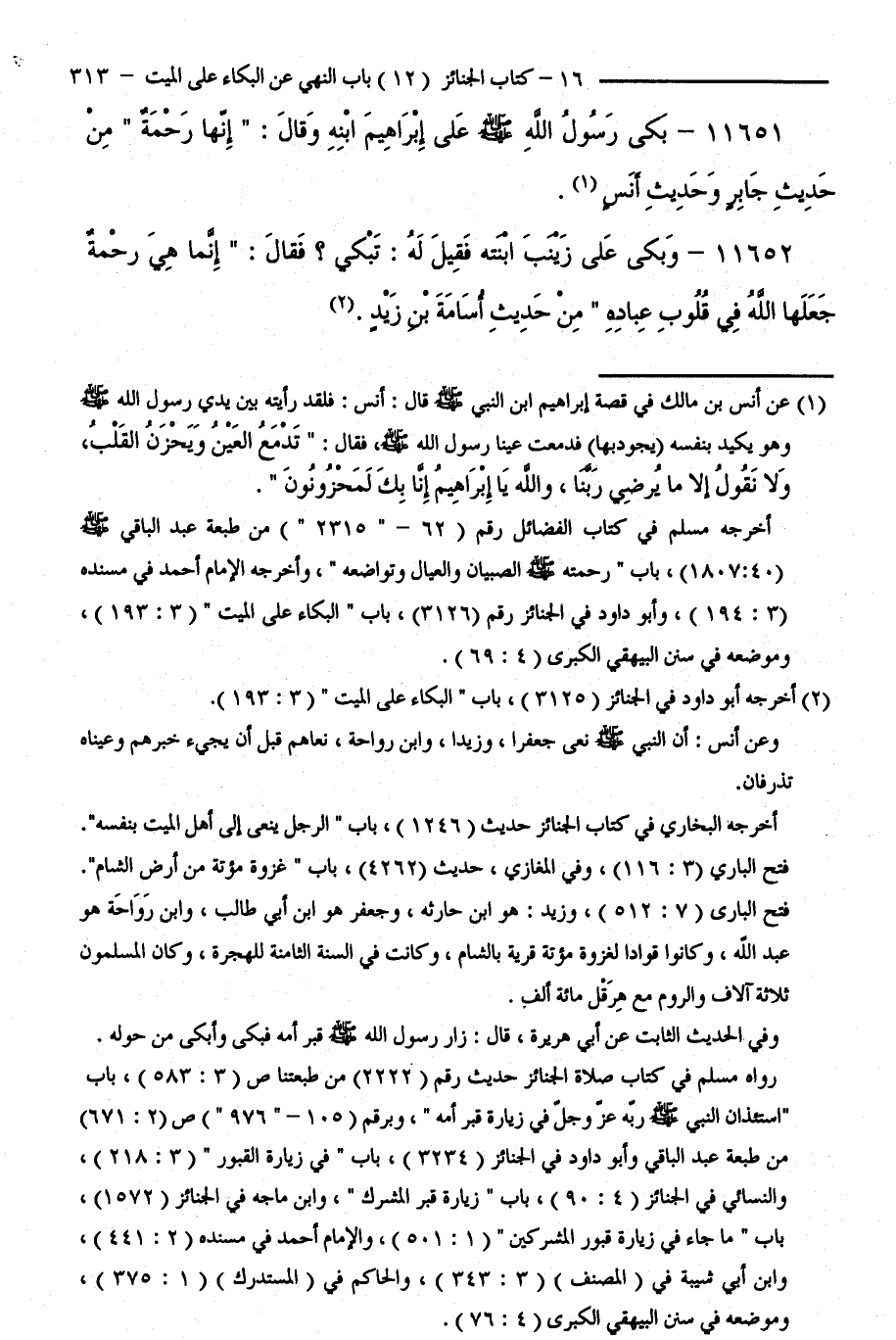 11651 - بَكَى رَسُولُ اللَّهِ صَلَّى اللَّهُ عَلَيْهِ وَسَلَّمَ عَلَى إِبْرَاهِيمَ ابْنِهِ، وَقَالَ: " إِنَّهَا رَحْمَةٌ " مِنْ حَدِيثِ جَابِرٍ، وَحَدِيثِ أَنَسٍ.