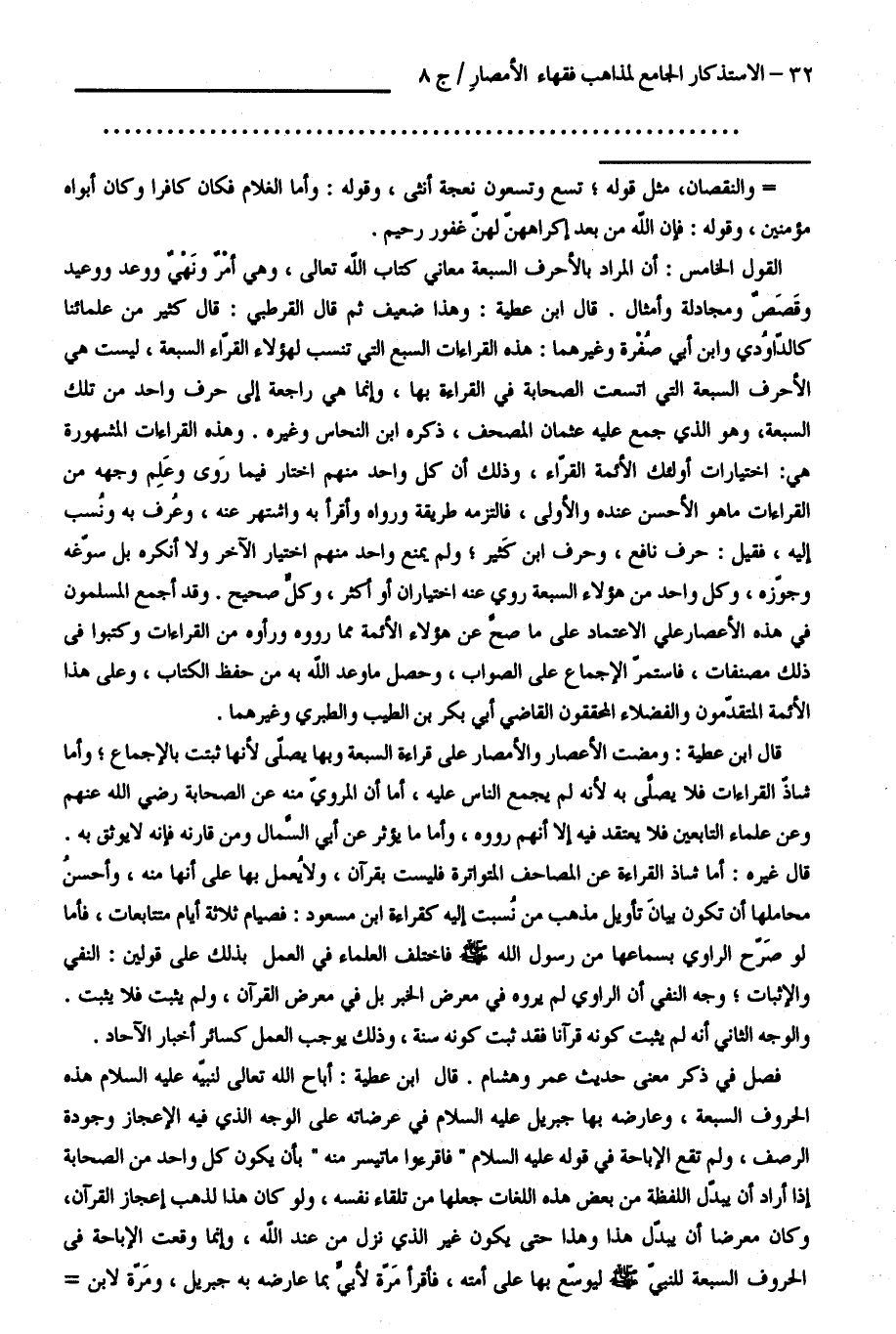 كتاب الاستذكار الجامع لمذاهب فقهاء الأمصار - ت: قلعجي (اسم الجزء: 8)