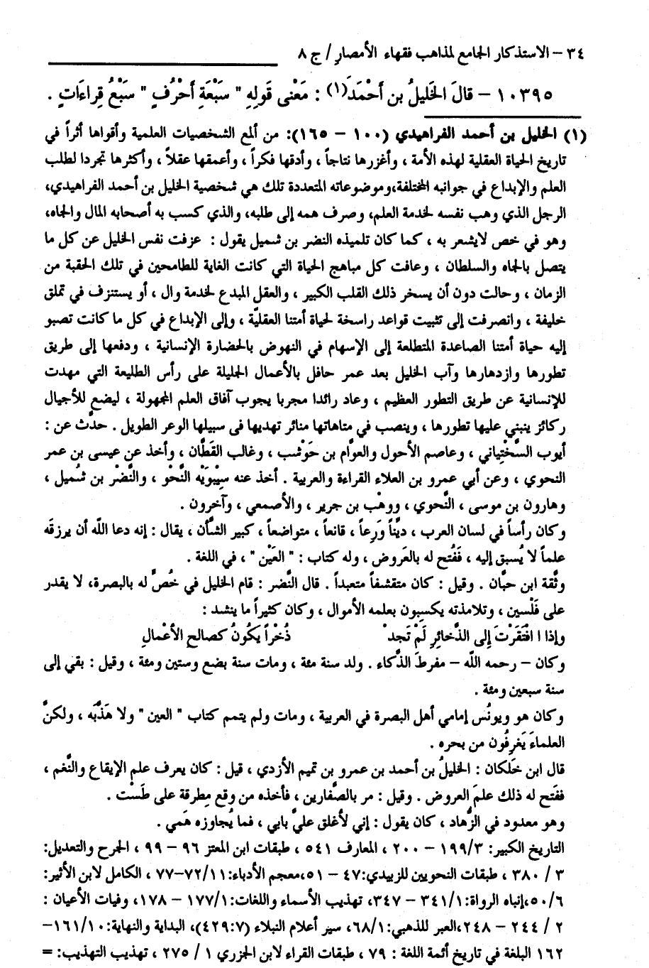 10395 - قَالَ الْخَلِيلُ بْنُ أَحْمَدَ: مَعْنَى قَوْلِهِ: " سَبْعَةِ أَحْرُفٍ " سَبْعُ قِرَاءَاتٍ.