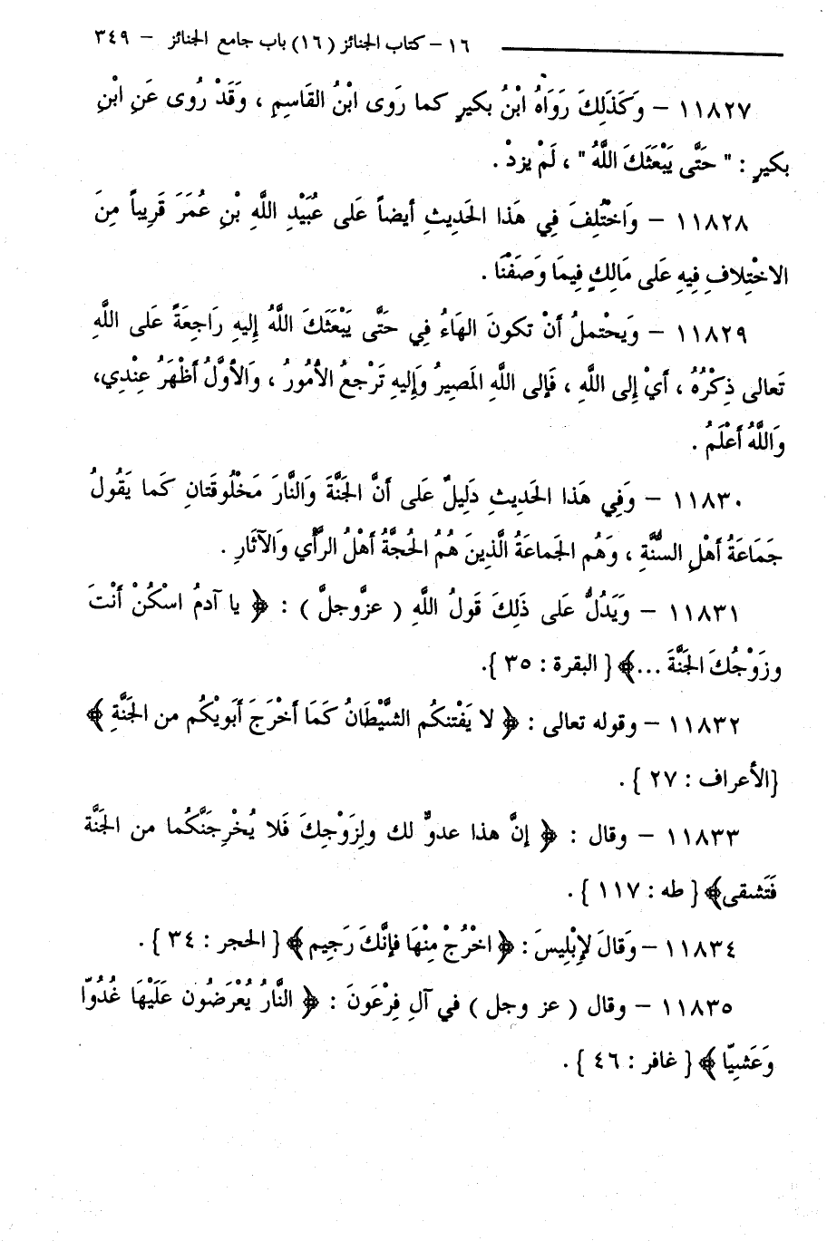 11830 - وَفِي هَذَا الْحَدِيثِ دَلِيلٌ عَلَى أَنَّ الْجَنَّةَ وَالنَّارَ مَخْلُوقَتَانِ كَمَا يَقُولُ جَمَاعَةُ أَهْلِ السُّنَّةِ، وَهُمُ الْجَمَاعَةُ الَّذِينَ هُمُ الْحُجَّةُ أَهْلُ الرَّأْيِ وَالْآثَارِ.