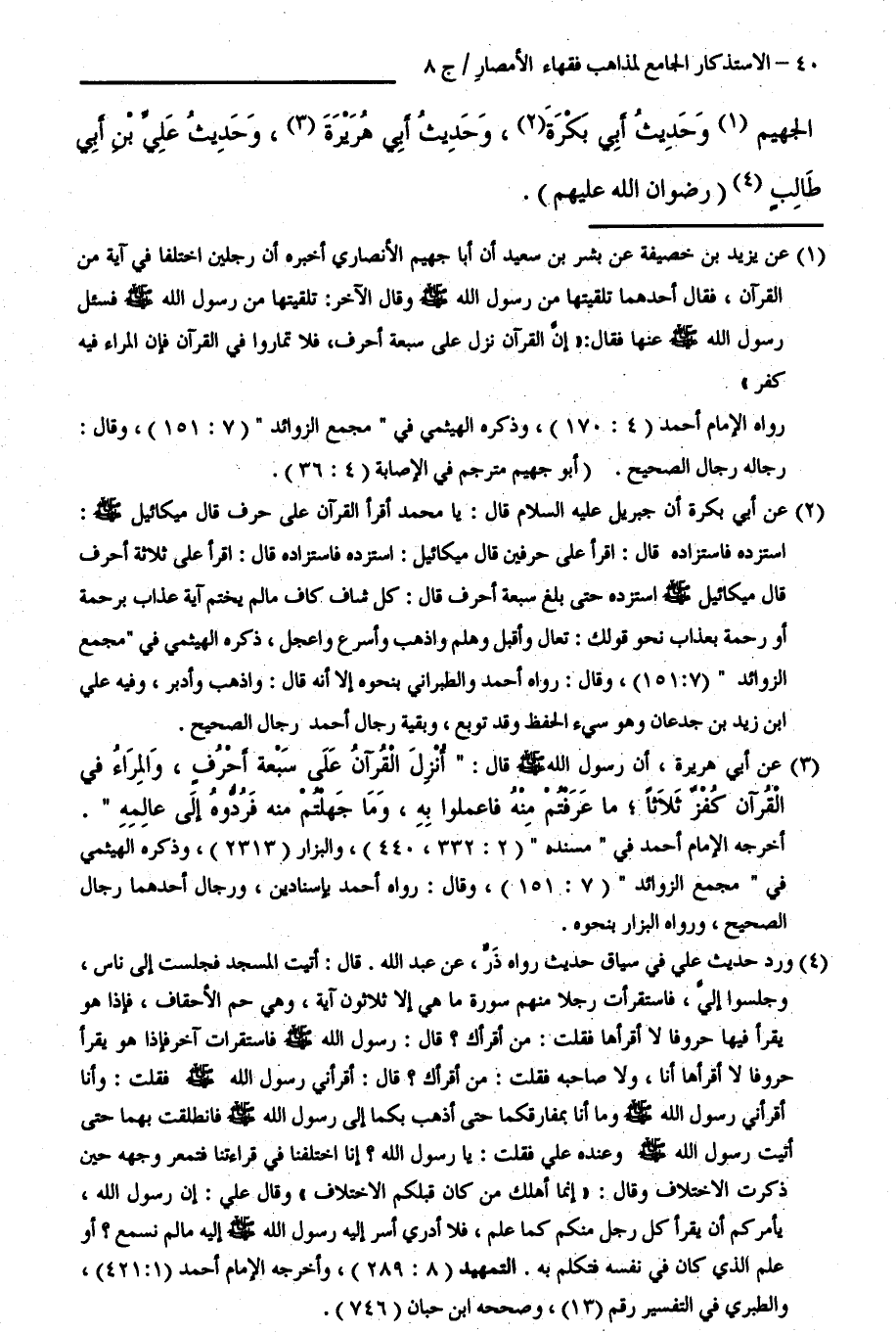كتاب الاستذكار الجامع لمذاهب فقهاء الأمصار - ت: قلعجي (اسم الجزء: 8)