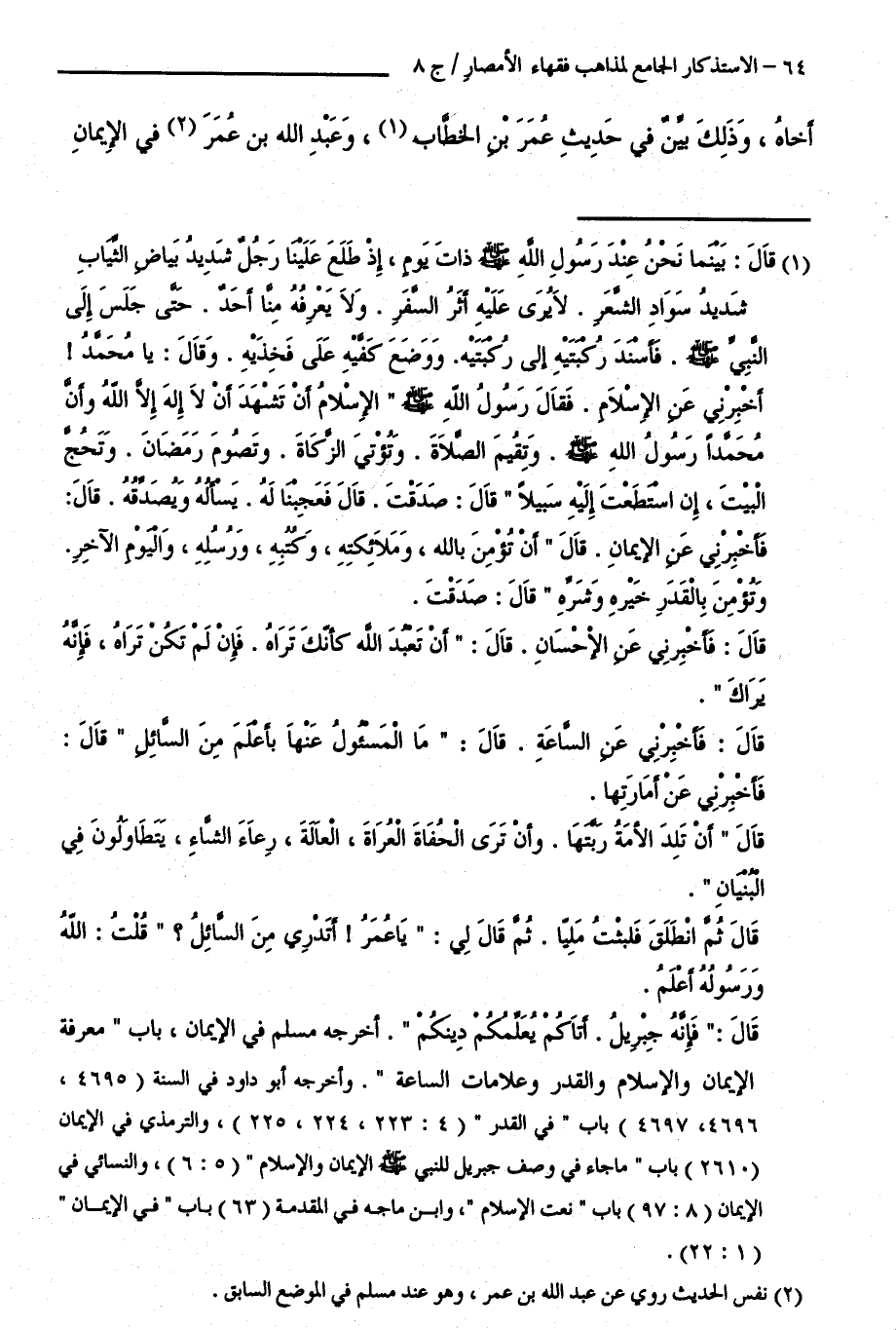 أَخَاهُ، وَذَلِكَ بَيِّنٌ فِي حَدِيثِ عُمَرَ بْنِ الْخَطَّابِ، وَعَبْدِ اللَّهِ بْنِ عُمَرَ فِي الْإِيمَانِ