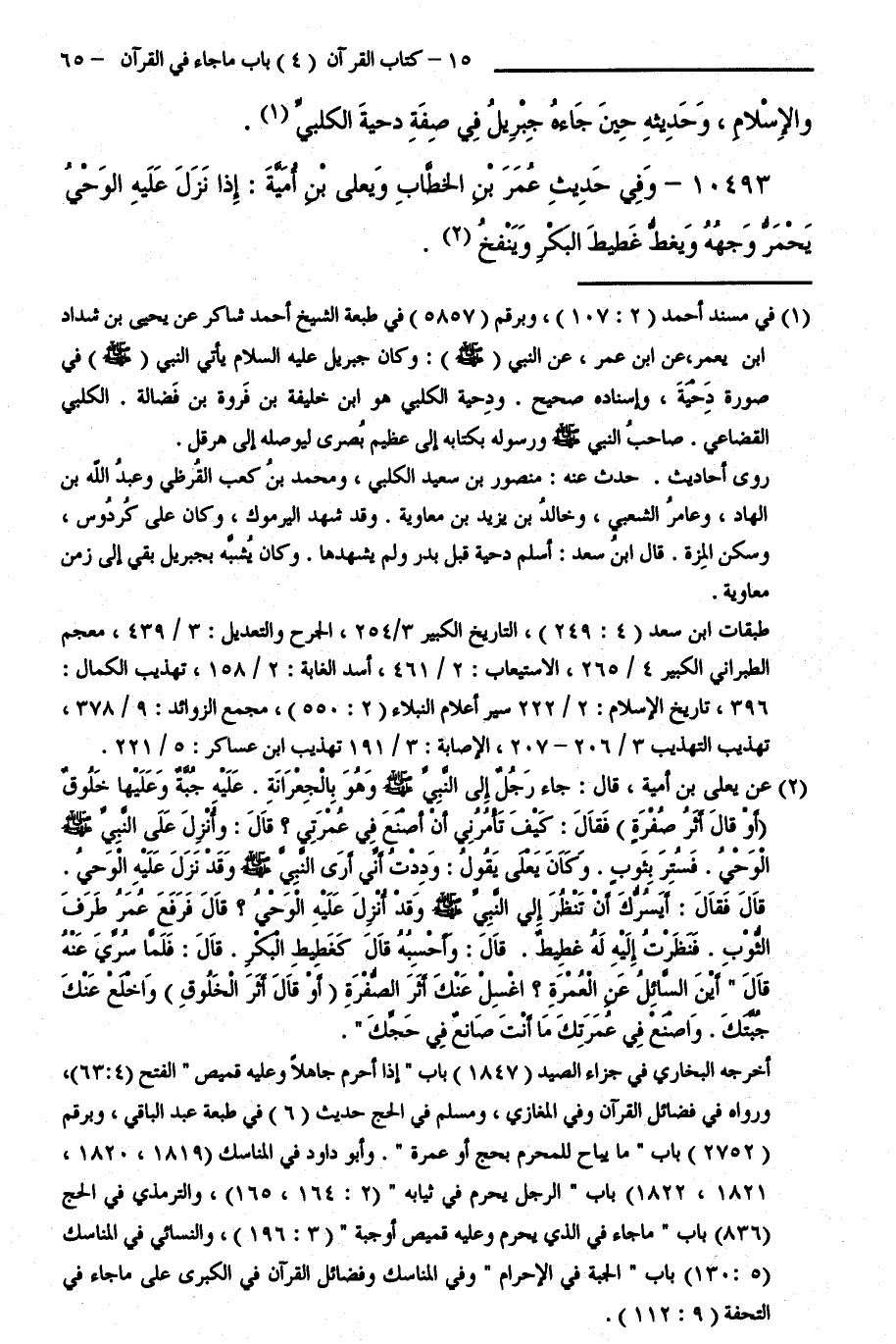 وَالْإِسْلَامِ، وَحَدِيثِهِ حِينَ جَاءَهُ جِبْرِيلُ فِي صِفَةِ دِحْيَةَ الْكَلْبِيِّ.