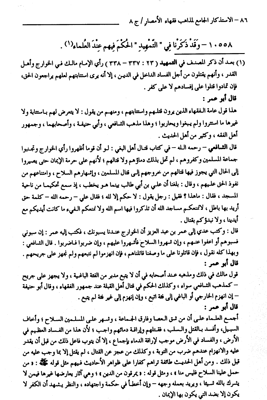 كتاب الاستذكار الجامع لمذاهب فقهاء الأمصار - ت: قلعجي (اسم الجزء: 8)