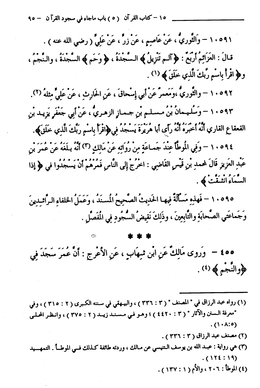455 - وَرَوَى مَالِكٌ عَنِ ابْنِ شِهَابٍ عَنِ الْأَعْرَجِ أَنَّ عُمَرَ سَجَدَ فِي " وَالنَّجْمِ ".