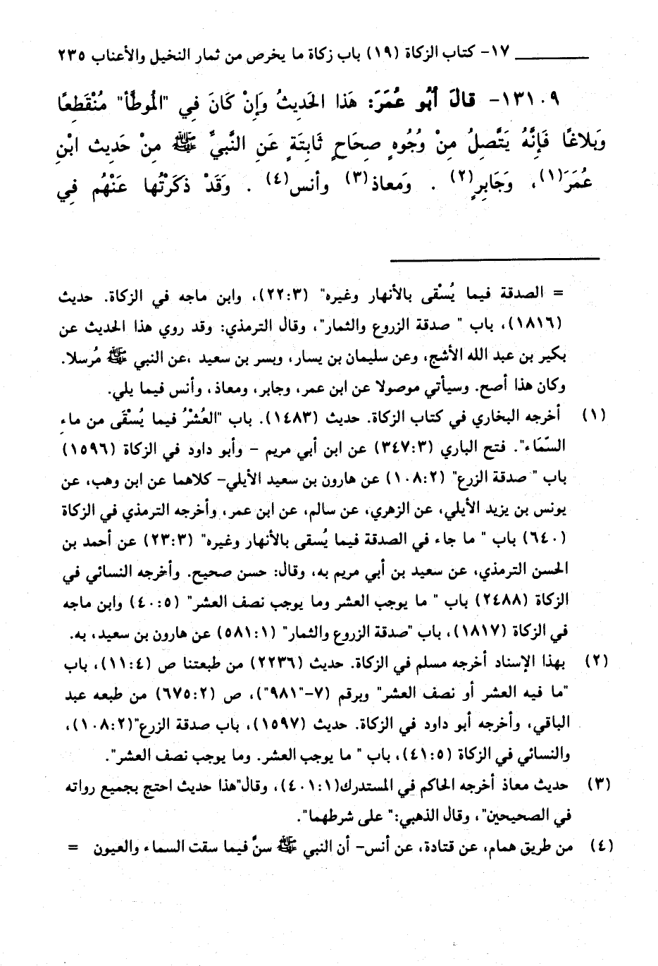 13109 - قَالَ أَبُو عُمَرَ: هَذَا الْحَدِيثُ وَإِنْ كَانَ فِي " الْمُوَطَّأِ " مُنْقَطِعًا وَبَلَاغًا فَإِنَّهُ يَتَّصِلُ مِنْ وُجُوهٍ صِحَاحٍ ثَابِتَةٍ عَنِ النَّبِيِّ صَلَّى اللَّهُ عَلَيْهِ وَسَلَّمَ مِنْ حَدِيثِ ابْنِ عُمَرَ، وَجَابِرٍ. وَمُعَاذٍ، وَأَنَسٍ. وَقَدْ ذَكَرْتُهَا عَنْهُمْ فِي