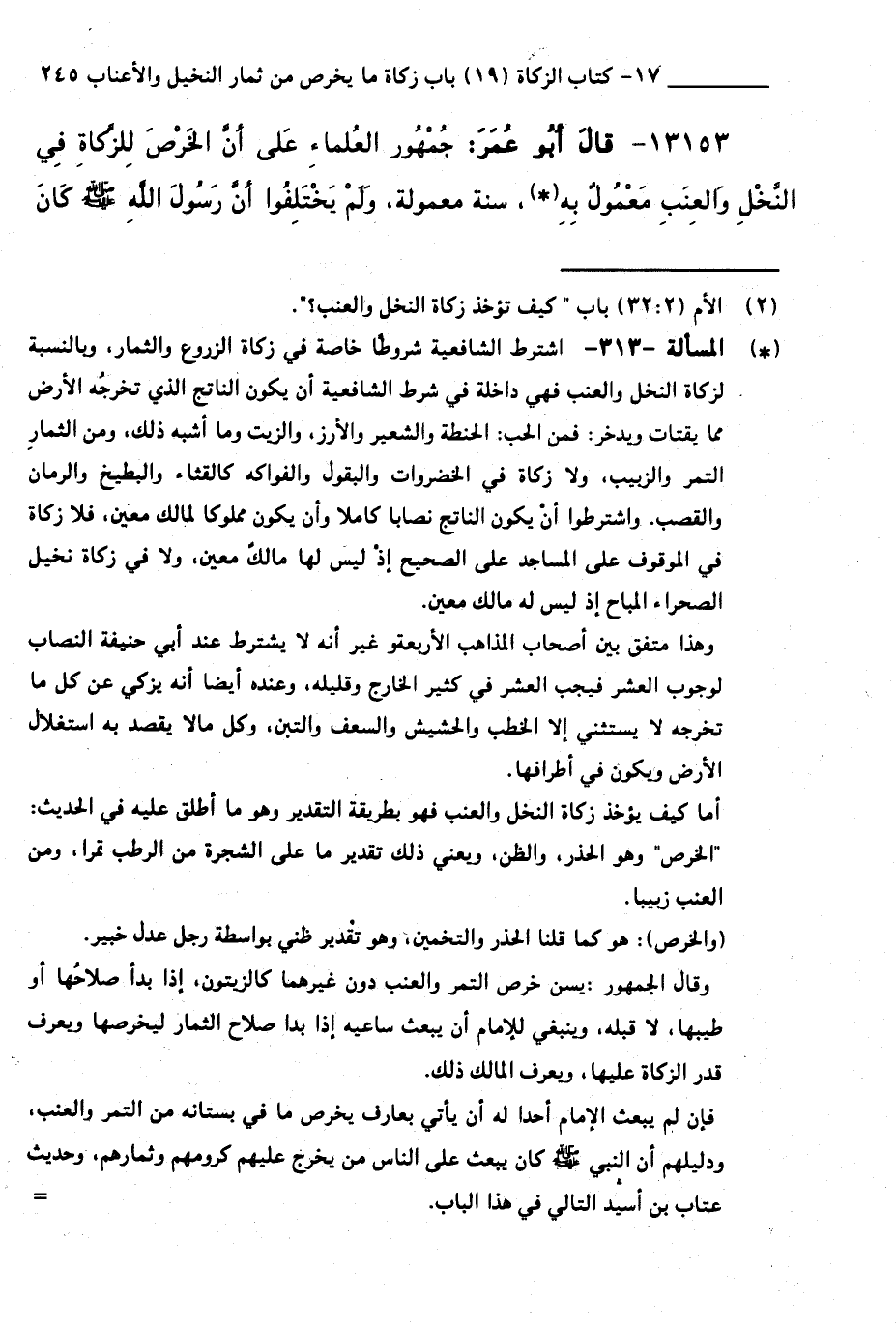 3153 - قَالَ أَبُو عُمَرَ: جُمْهُورُ الْعُلَمَاءِ عَلَى أَنَّ الْخَرْصَ لِلزَّكَاةِ فِي النَّخْلِ وَالْعِنَبِ مَعْمُولٌ بِهِ سُنَّةٌ مَعْمُولَةٌ، وَلَمْ يَخْتَلِفُوا أَنَّ رَسُولَ اللَّهِ صَلَّى اللَّهُ عَلَيْهِ وَسَلَّمَ كَانَ