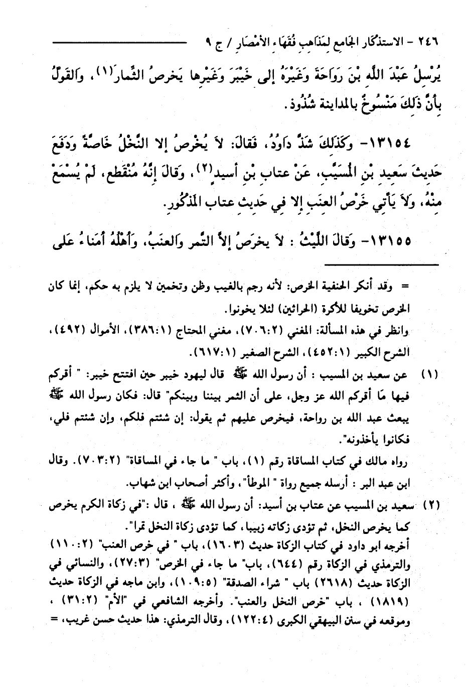 13154 - وَكَذَلِكَ شَذَّ دَاوُدُ، فَقَالَ: لَا يُخْرَصُ إِلَّا النَّخْلُ خَاصَّةً، وَدَفَعَ حَدِيثَ سَعِيدِ بْنِ الْمُسَيَّبِ، عَنْ عَتَّابِ بْنِ أَسِيدٍ، وَقَالَ إِنَّهُ مُنْقَطِعٌ، لَمْ يُسْمَعْ مِنْهُ، وَلَا يَأْتِي خَرْصُ الْعِنَبِ إِلَّا فِي حَدِيثِ عَتَّابٍ الْمَذْكُورِ.