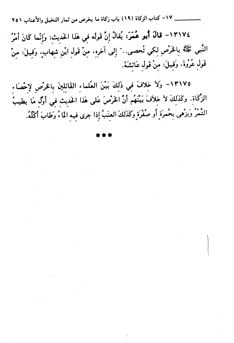 13174 - قَالَ أَبُو عُمَرَ: يُقَالُ إِنَّ قَوْلَهُ فِي هَذَا الْحَدِيثِ: وَإِنَّمَا كَانَ أَمْرُ النَّبِيِّ صَلَّى اللَّهُ عَلَيْهِ وَسَلَّمَ بِالْخَرْصِ لِكَيْ تُحْصَى.. " إِلَى آخِرِهِ، مِنْ قَوْلِ ابْنِ شِهَابٍ، وَقِيلَ: مِنْ قَوْلِ عُرْوَةَ، وَقِيلَ: مِنْ قَوْلِ عَائِشَةَ.
