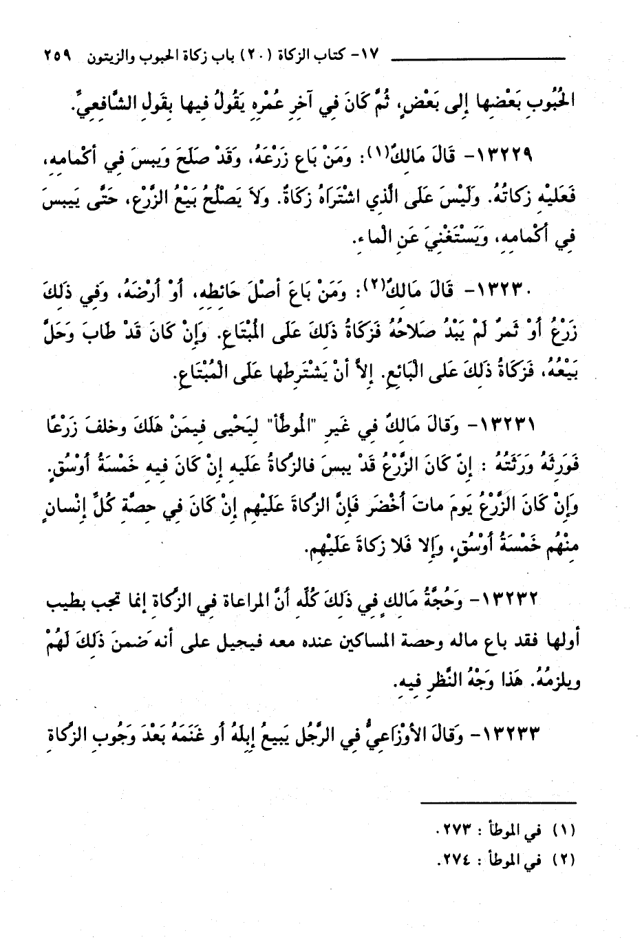 13230 - قَالَ مَالِكٌ: وَمَنْ بَاعَ أَصْلَ حَائِطِهِ، أَوْ أَرْضَهُ، وَفِي ذَلِكَ زَرْعٌ أَوْ ثَمَرٌ لَمْ يَبْدُ صَلَاحُهُ فَزَكَاةُ ذَلِكَ عَلَى الْمُبْتَاعِ. وَإِنْ كَانَ قَدْ طَابَ وَحَلَّ بَيْعُهُ، فَزَكَاةُ ذَلِكَ عَلَى الْبَائِعِ. إِلَّا أَنْ يَشْتَرِطَهَا عَلَى الْمُبْتَاعِ.
