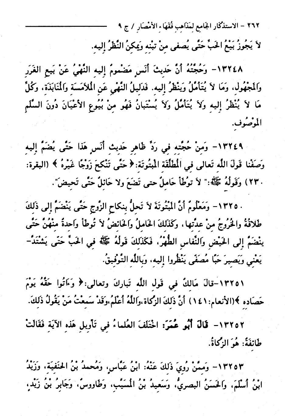 كتاب الاستذكار الجامع لمذاهب فقهاء الأمصار - ت: قلعجي (اسم الجزء: 9)