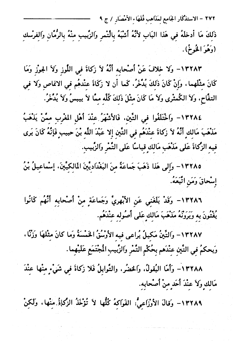 كتاب الاستذكار الجامع لمذاهب فقهاء الأمصار - ت: قلعجي (اسم الجزء: 9)