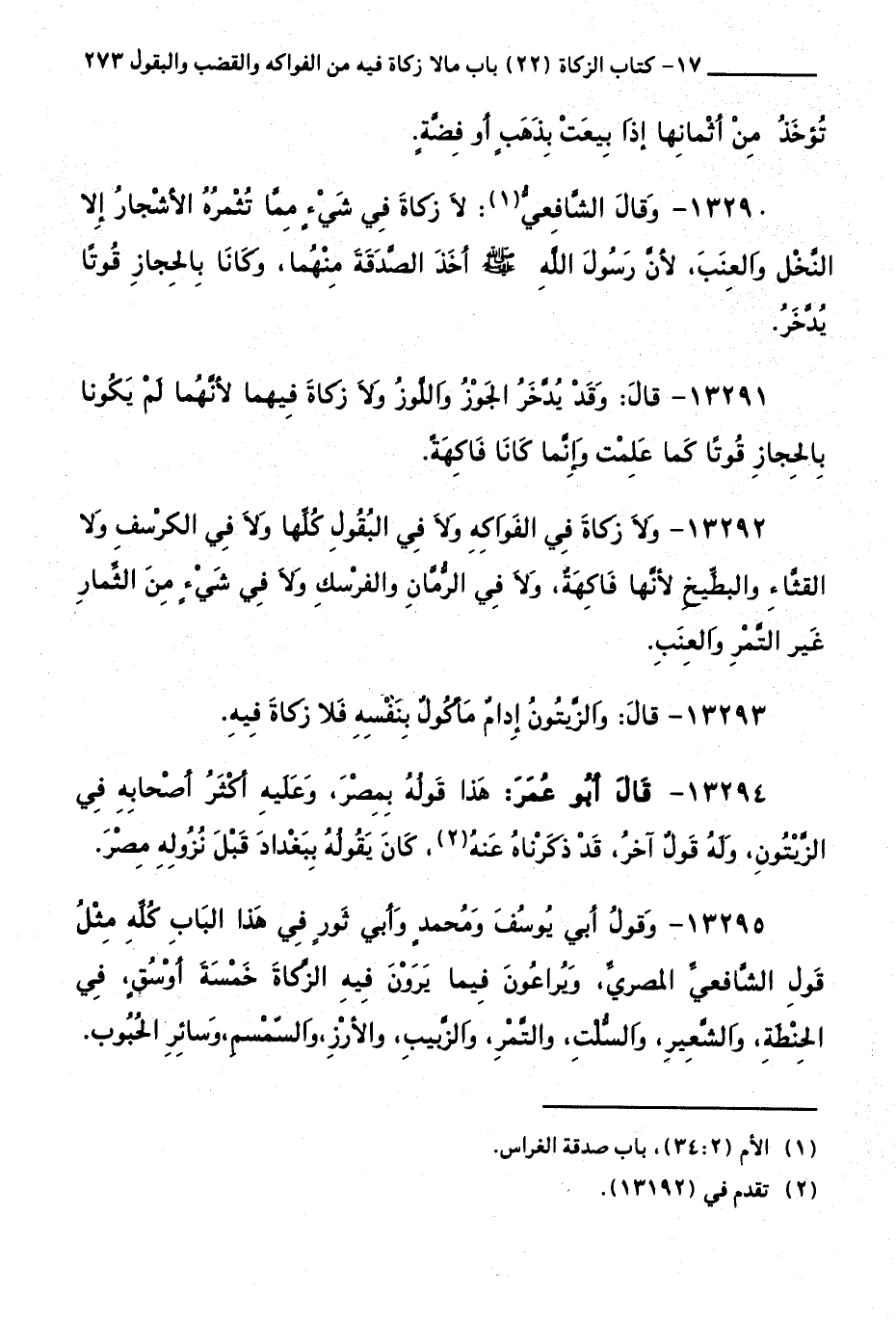13293 - قَالَ: وَالزَّيْتُونُ إِدَامٌ مَأْكُولٌ بِنَفْسِهِ فَلَا زَكَاةَ فِيهِ.