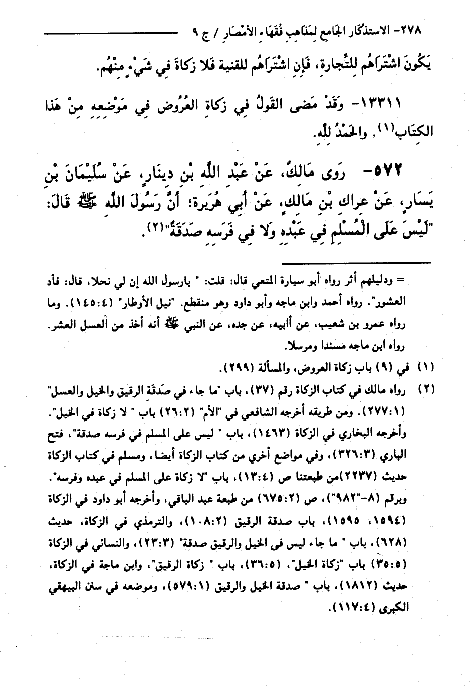 كتاب الاستذكار الجامع لمذاهب فقهاء الأمصار - ت: قلعجي (اسم الجزء: 9)