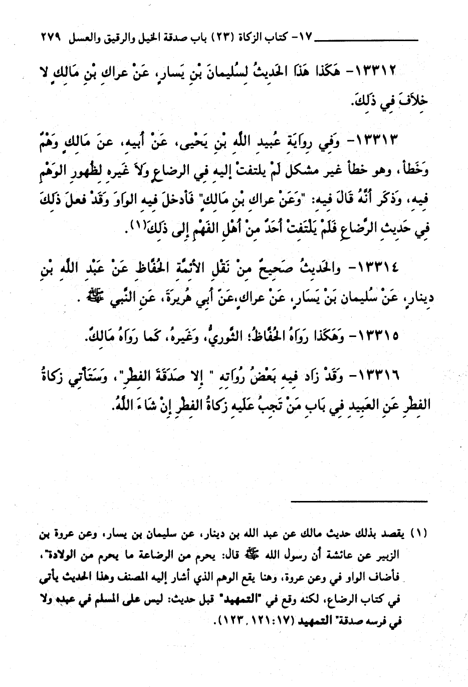 13314 - وَالْحَدِيثُ صَحِيحٌ مِنْ نَقْلِ الْأَئِمَّةِ الْحُفَّاظِ عَنْ عَبْدِ اللَّهِ بْنِ دِينَارٍ، عَنْ سُلَيْمَانَ بَنَ يَسَارٍ، عَنْ عِرَاكٍ، عَنْ أَبِي هُرَيْرَةَ، عَنِ النَّبِيِّ صَلَّى اللَّهُ عَلَيْهِ وَسَلَّمَ.