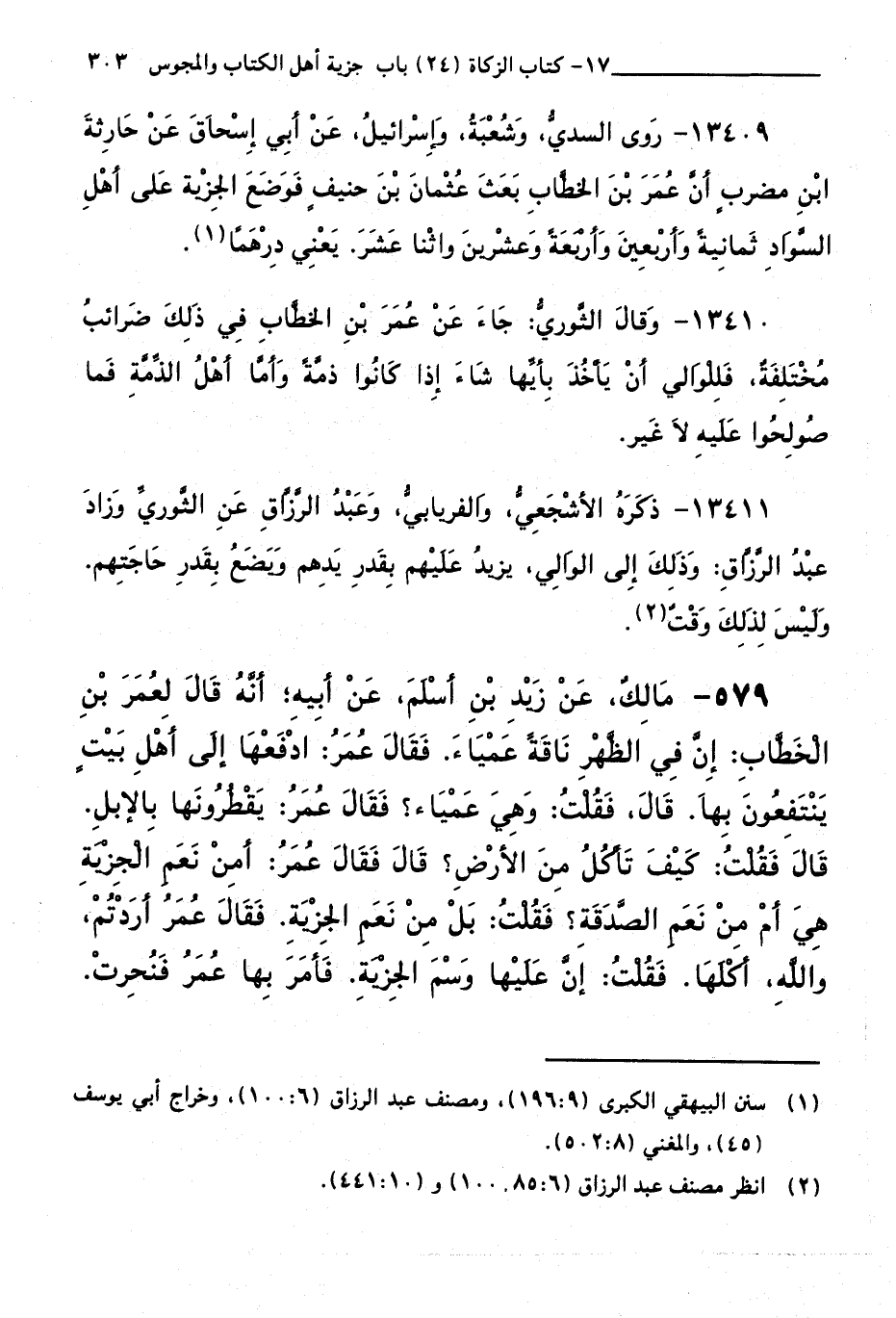 13409 - رَوَى السُّدِّيُّ، وَشُعْبَةُ، وَإِسْرَائِيلُ، عَنْ أَبِي إِسْحَاقَ عَنْ حَارِثَةَ بْنِ مُضَرِّبٍ: أَنَّ عُمَرَ بْنَ الْخَطَّابِ بَعَثَ عُثْمَانَ بْنَ حُنَيْفٍ فَوَضَعَ الْجِزْيَةَ عَلَى أَهْلِ السَّوَادِ ثَمَانِيَةً وَأَرْبَعِينَ وَأَرْبَعَةً وَعِشْرِينَ وَاثْنَيْ عَشَرَ. يَعْنِي دِرْهَمًا.