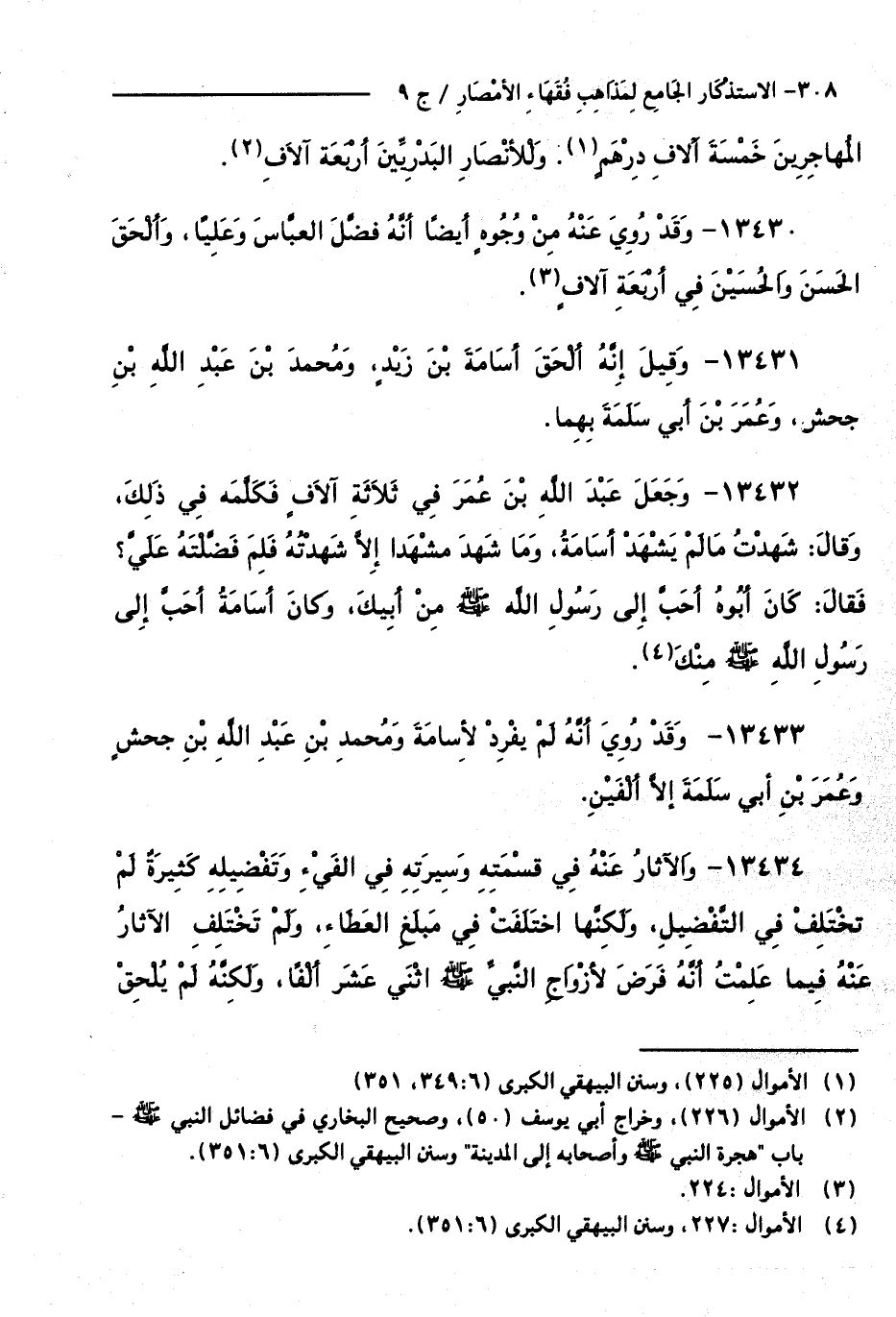 13430 - وَقَدْ رُوِيَ عَنْهُ مِنْ وُجُوهٍ أَيْضًا أَنَّهُ فَضَّلَ الْعَبَّاسَ وَعَلِيًّا، وَأَلْحَقَ الْحَسَنَ وَالْحُسَيْنَ فِي أَرْبَعَةِ آلَافٍ.