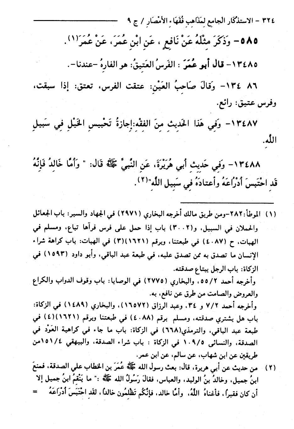 كتاب الاستذكار الجامع لمذاهب فقهاء الأمصار - ت: قلعجي (اسم الجزء: 9)