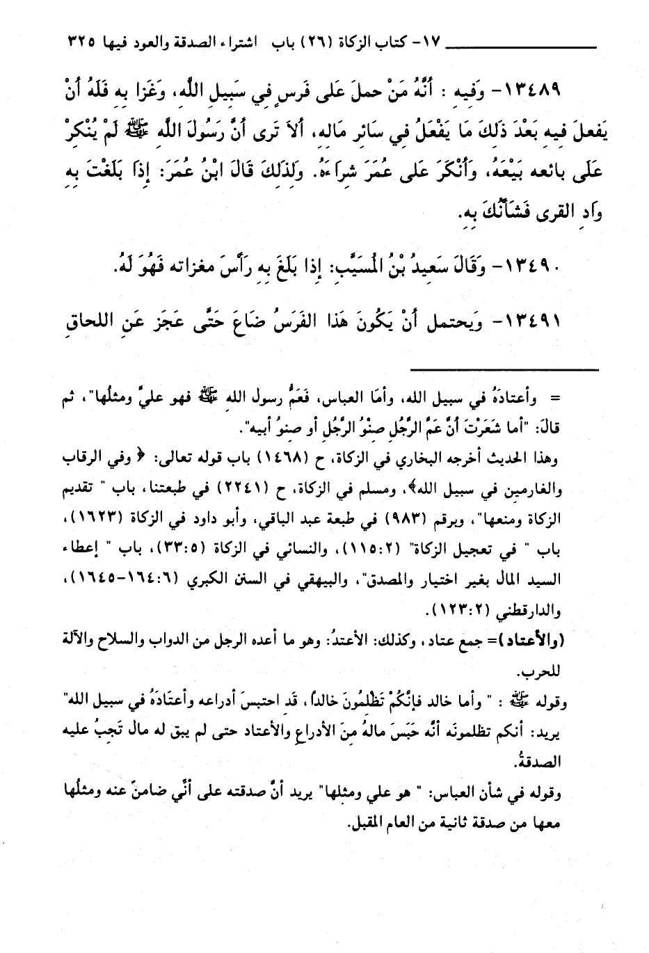 13489 - وَفِيهِ: أَنَّهُ مَنْ حَمَلَ عَلَى فَرَسٍ فِي سَبِيلِ اللَّهِ، وَغَزَا بِهِ فَلَهُ أَنْ يَفْعَلَ فِيهِ بَعْدَ ذَلِكَ مَا يَفْعَلُ فِي سَائِرِ مَالِهِ، أَلَا تَرَى أَنَّ رَسُولَ اللَّهِ صَلَّى اللَّهُ عَلَيْهِ وَسَلَّمَ لَمْ يُنْكِرْ عَلَى بَائِعِهِ بَيْعَهُ، وَأَنْكَرَ عَلَى عُمَرَ شِرَاءَهُ. وَلِذَلِكَ قَالَ ابْنُ عُمَرَ: إِذَا بَلَغْتَ بِهِ وَادِي الْقُرَى فَشَأْنَكَ بِهِ.