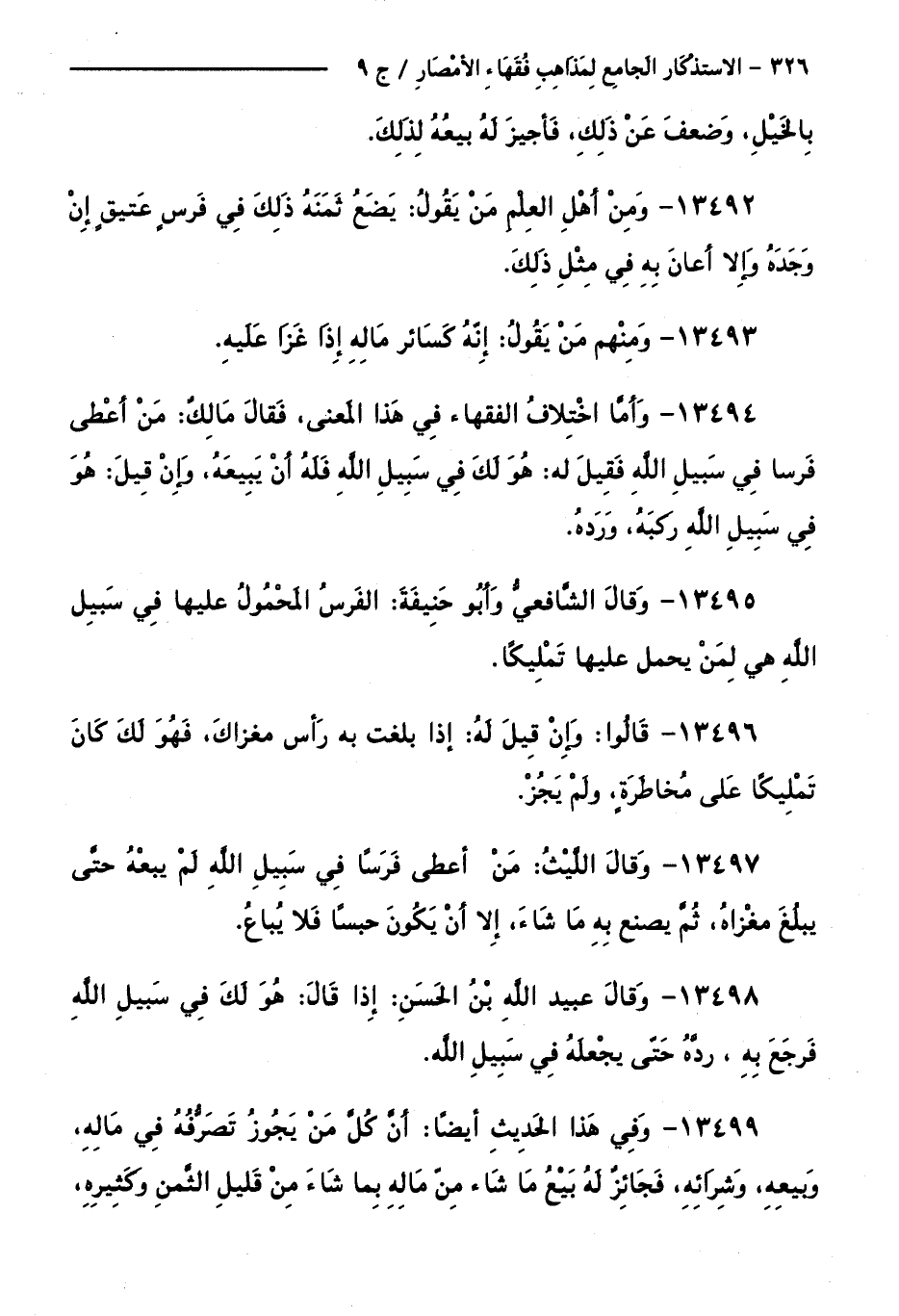 كتاب الاستذكار الجامع لمذاهب فقهاء الأمصار - ت: قلعجي (اسم الجزء: 9)