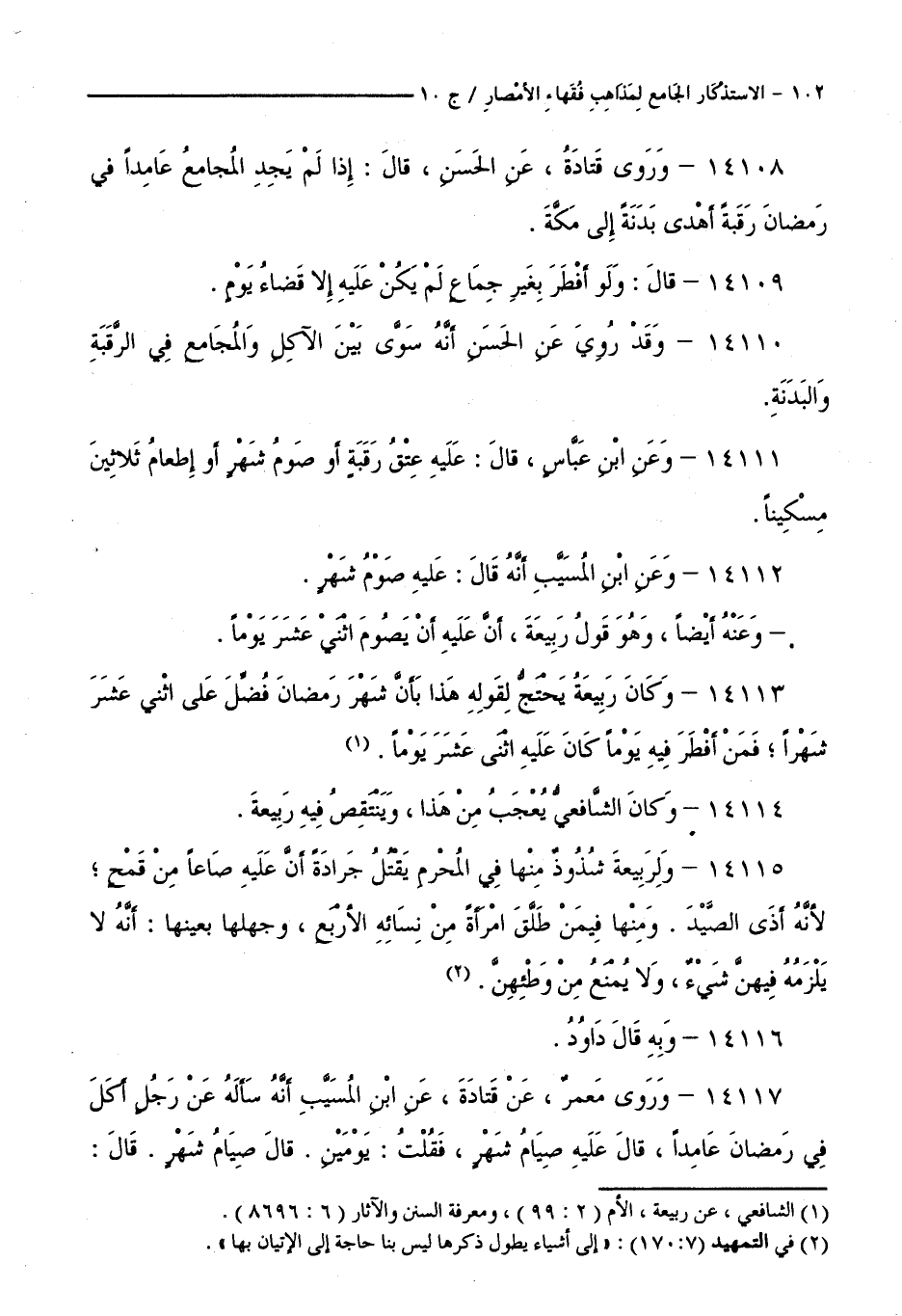 كتاب الاستذكار الجامع لمذاهب فقهاء الأمصار - ت: قلعجي (اسم الجزء: 10)