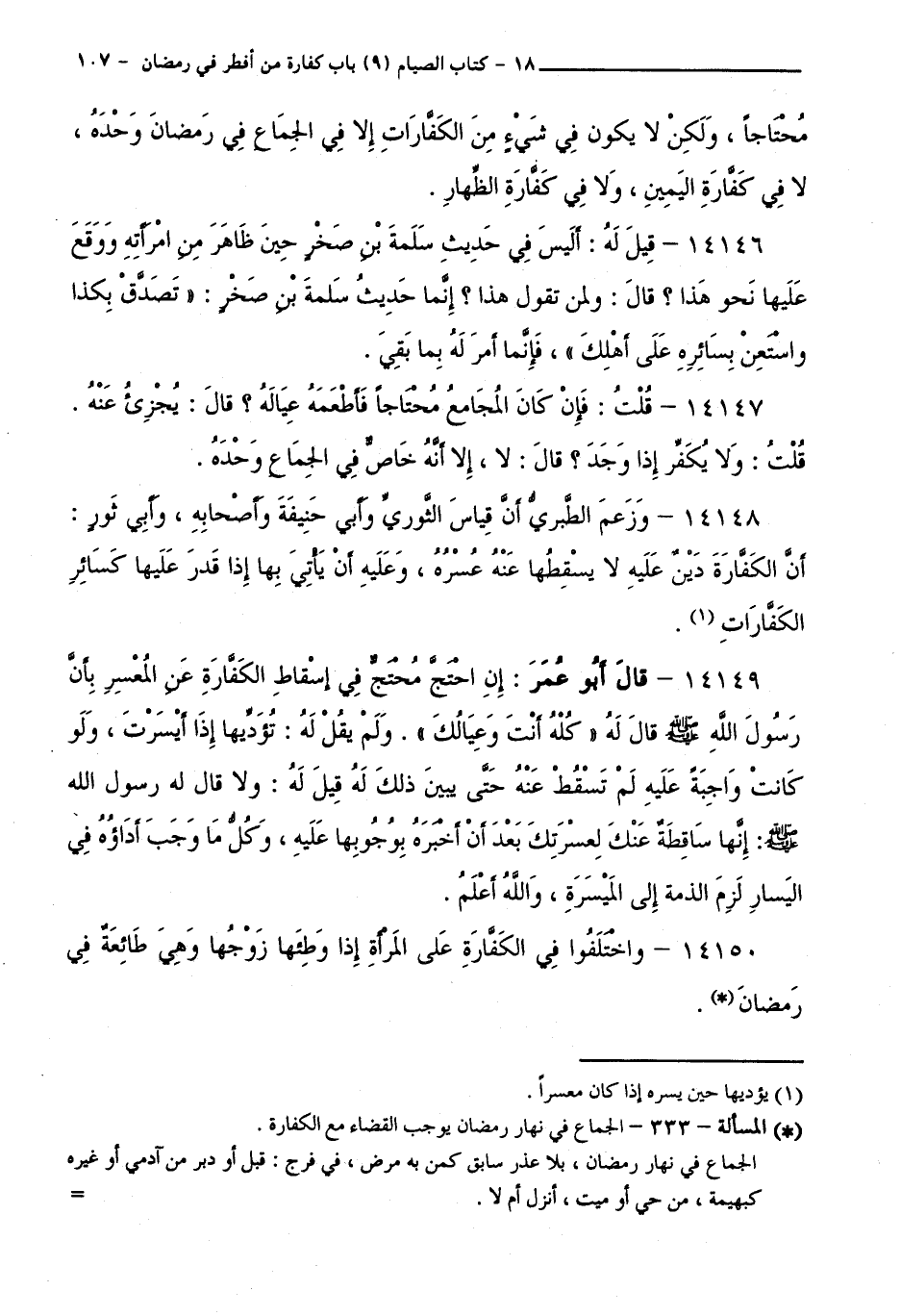 14148 - وَزَعَمَ الطَّبَرِيُّ أَنَّ قِيَاسَ الثَّوْرِيِّ، وَأَبِي حَنِيفَةَ وَأَصْحَابِهِ، وَأَبِي ثَوْرٍ، أَنَّ الْكَفَّارَةَ دَيْنٌ عَلَيْهِ لَا يُسْقِطُهَا عَنْهُ عُسْرُهُ، وَعَلَيْهِ أَنْ يَأْتِيَ بِهَا إِذَا قَدَرَ عَلَيْهَا كَسَائِرٍ الْكَفَّارَاتِ.