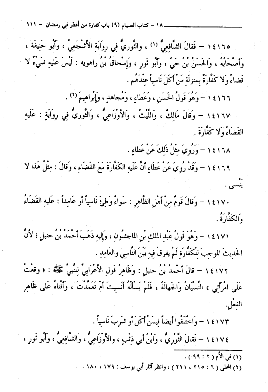 14173 - وَاخْتَلَفُوا أَيْضًا فِيمَنْ أَكَلَ أَوْ شَرِبَ نَاسِيًا.